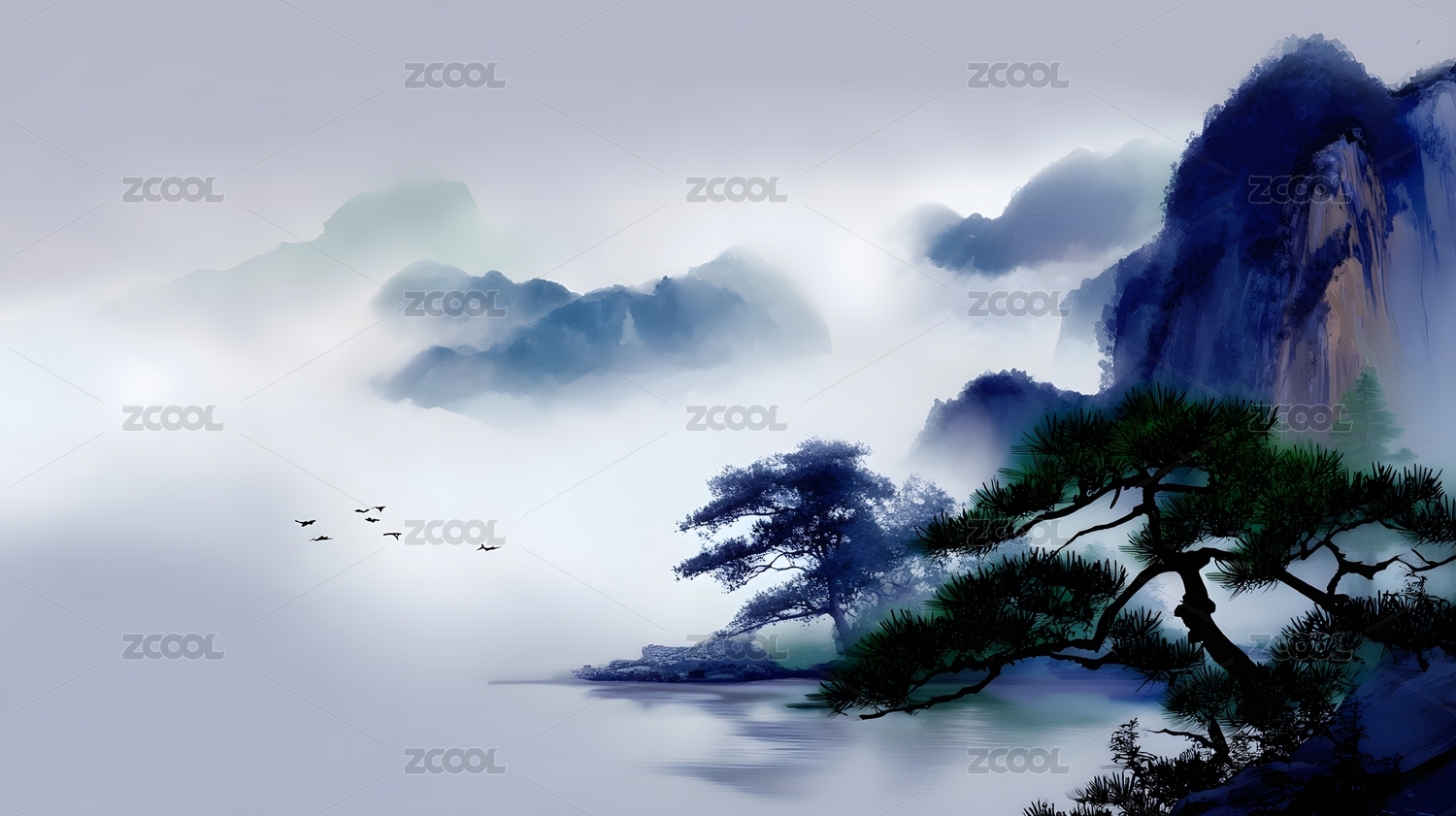 自然,风景,艺术,宁静,绘画,河流,树木,山水,水墨,中国风