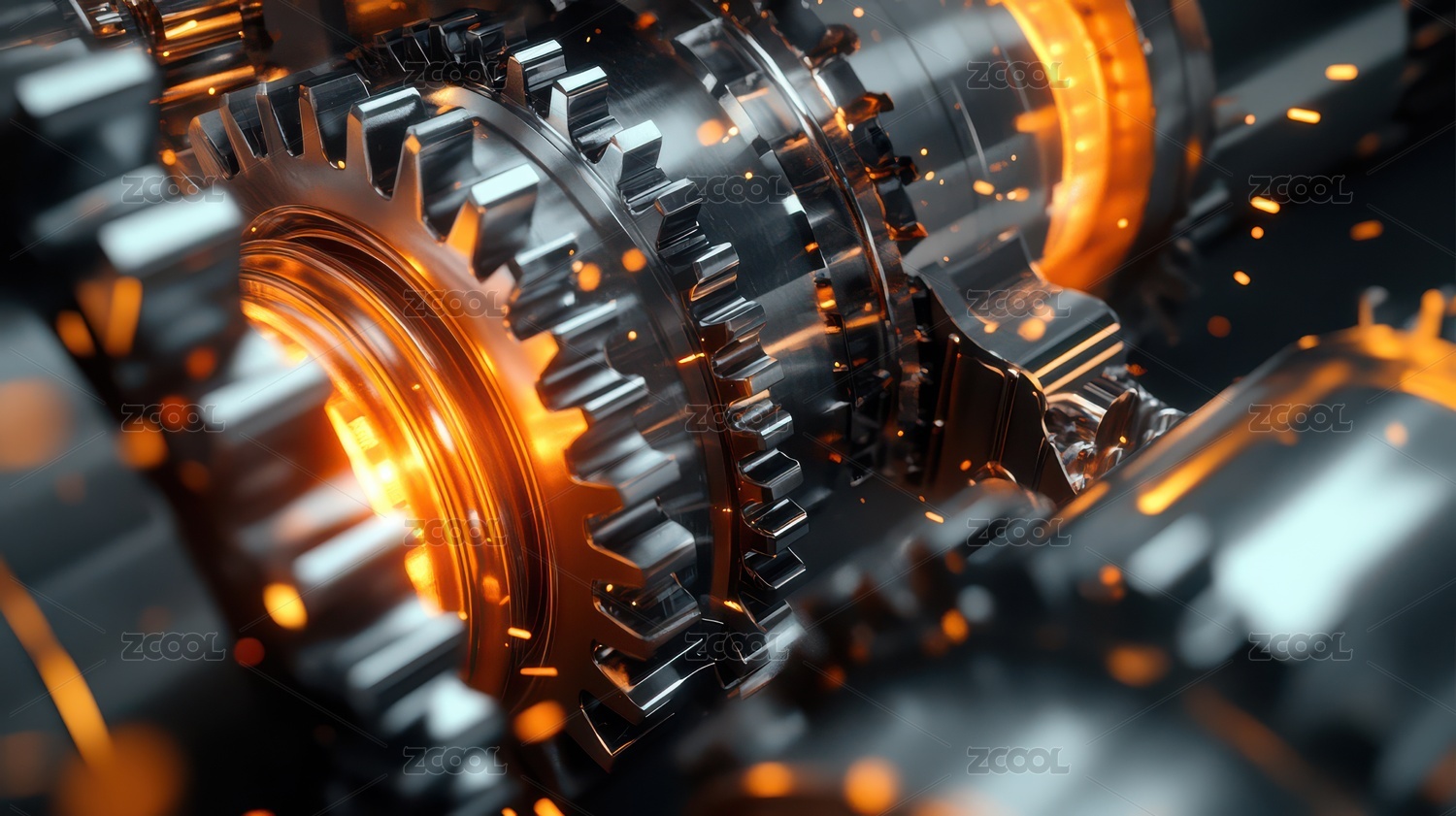 抽象精密度齿轮高科技电路与芯片3D渲染