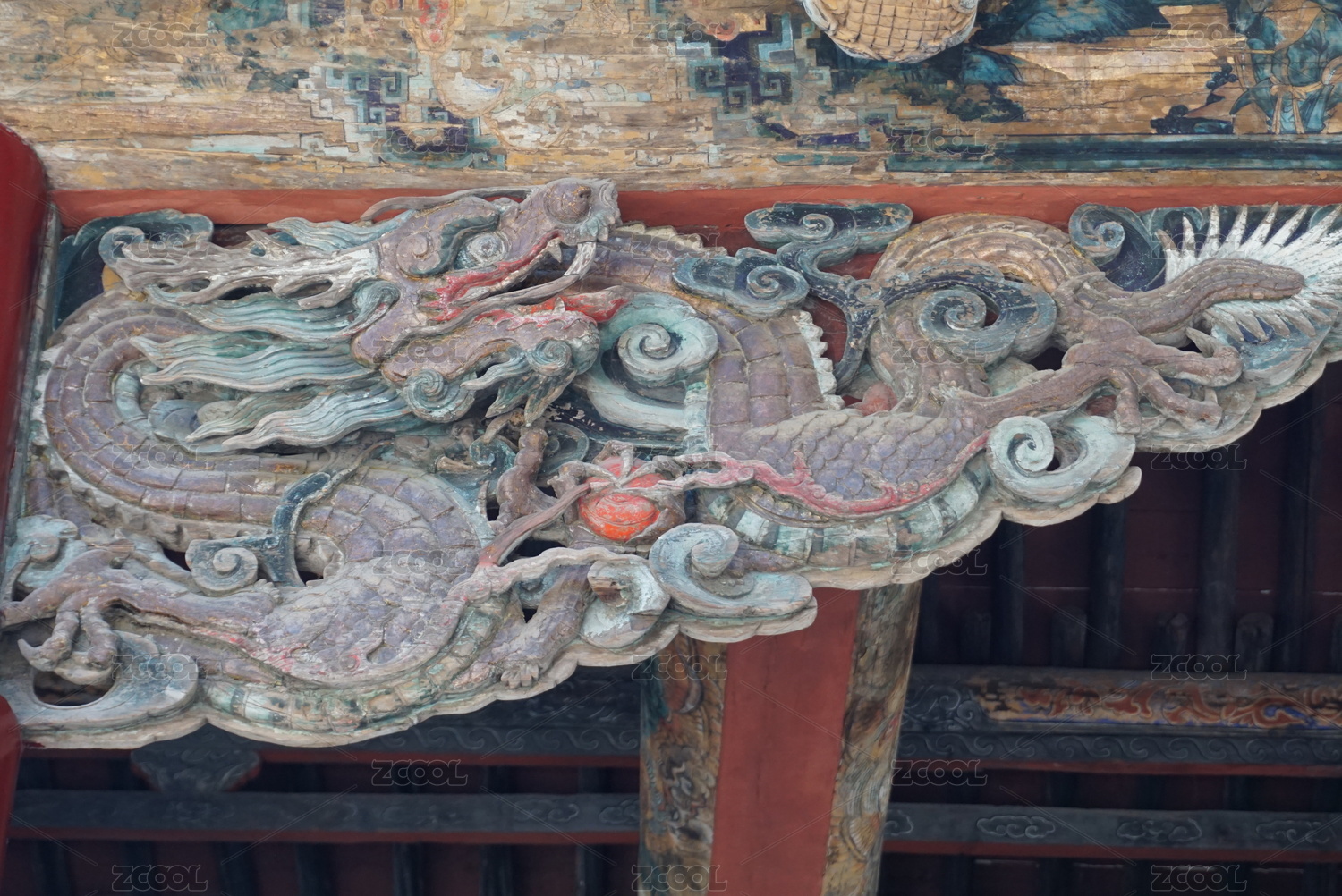 中国山西省平遥古城市楼古建筑上的雕龙雀替