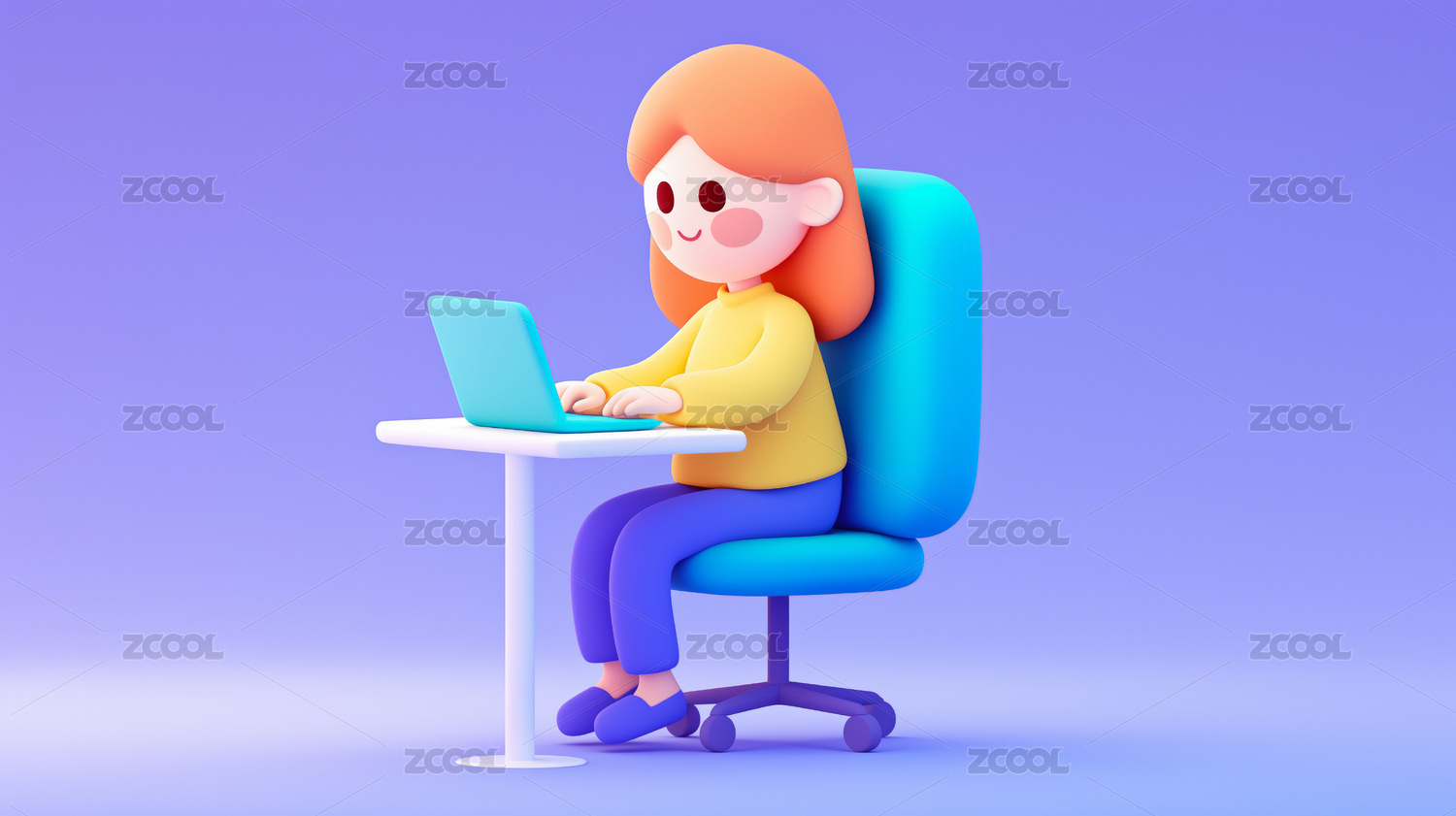 女人,女生,办公,工作,笔记本,电脑,可爱,卡通,3D,现代