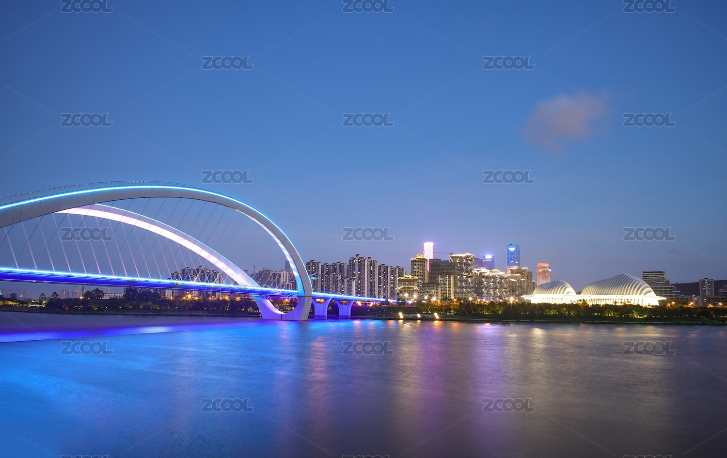 广州南沙蕉门公园蕉门河桥梁与城市夜景灯光