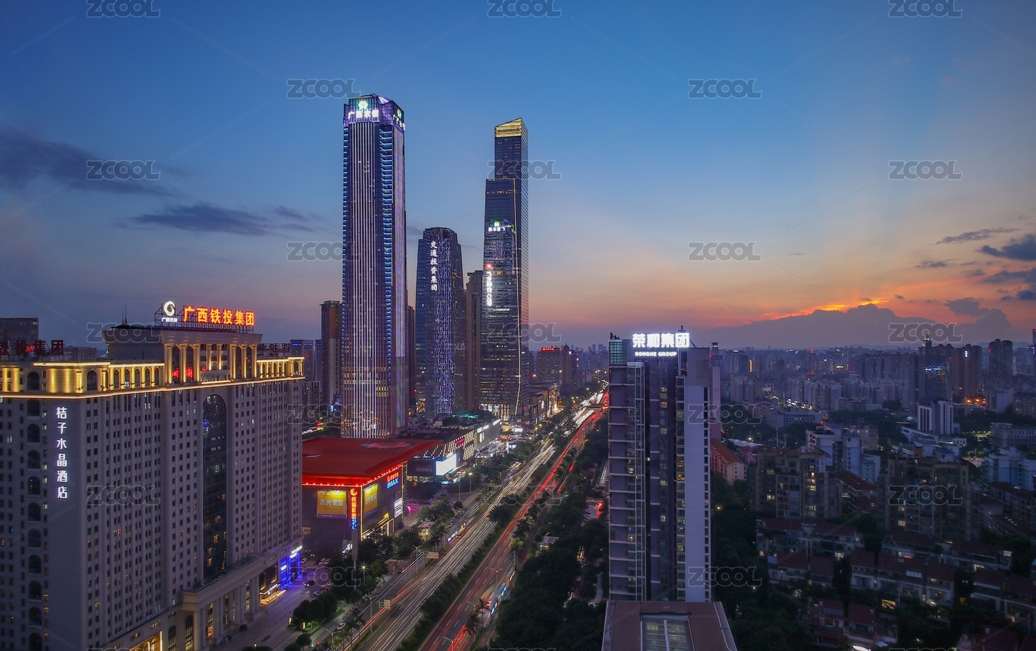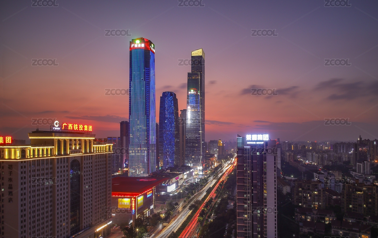 广西南宁东盟商务区万象城夜景图