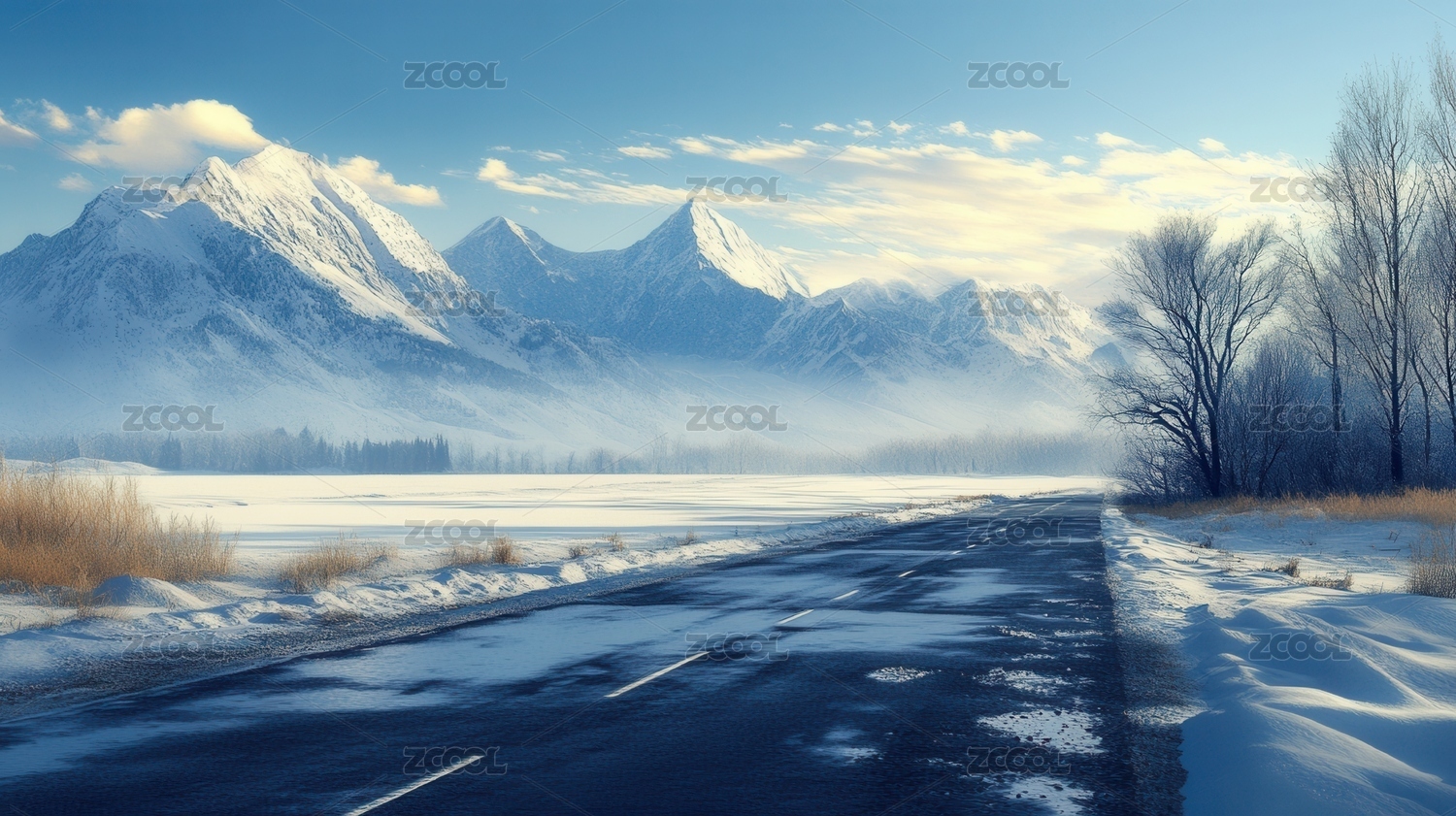 冬日雪原孤独公路