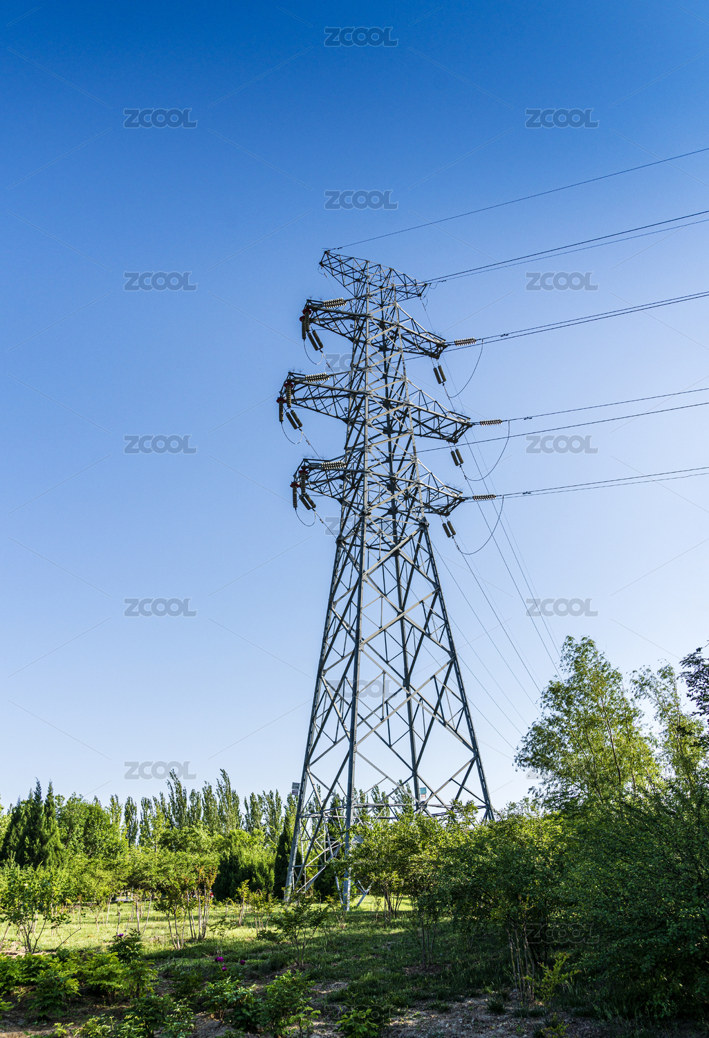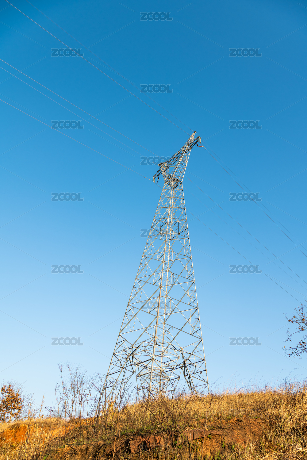 蓝天下的电力铁塔