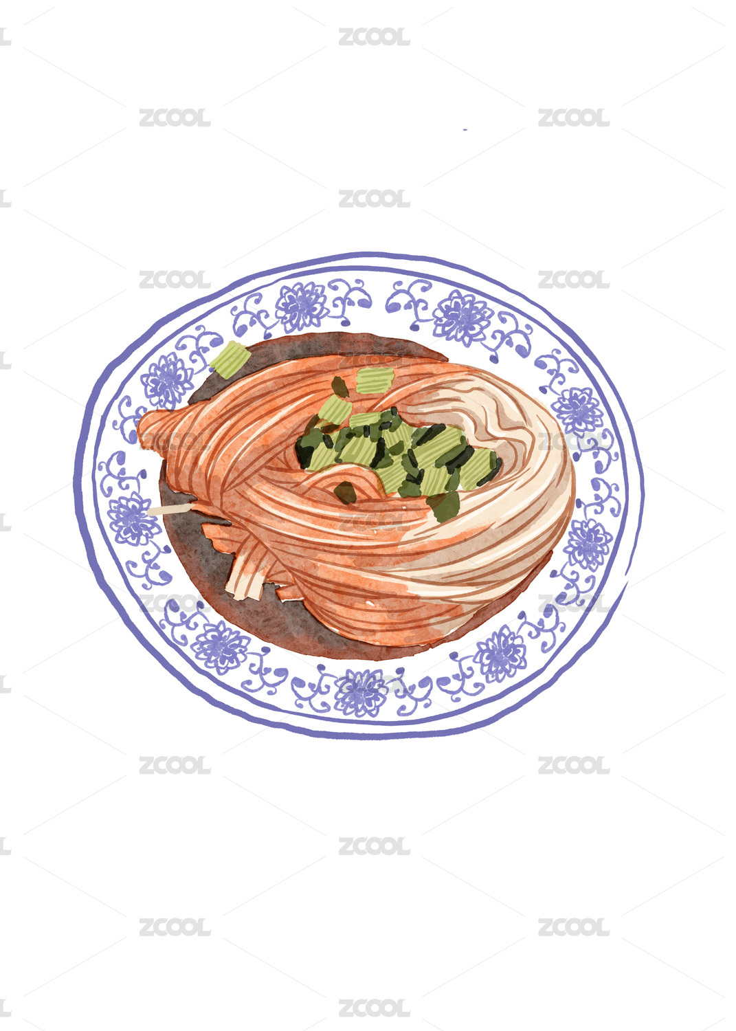 白底陶瓷盘中色泽鲜亮的传统美食烤鸭插画