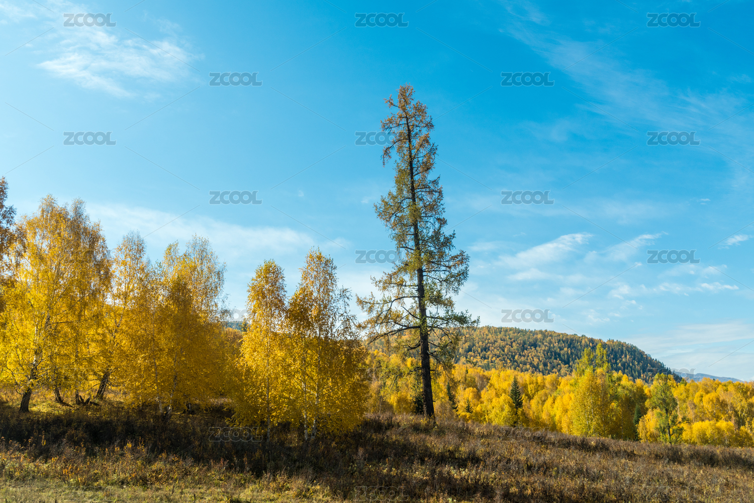 秋天金色的桦树