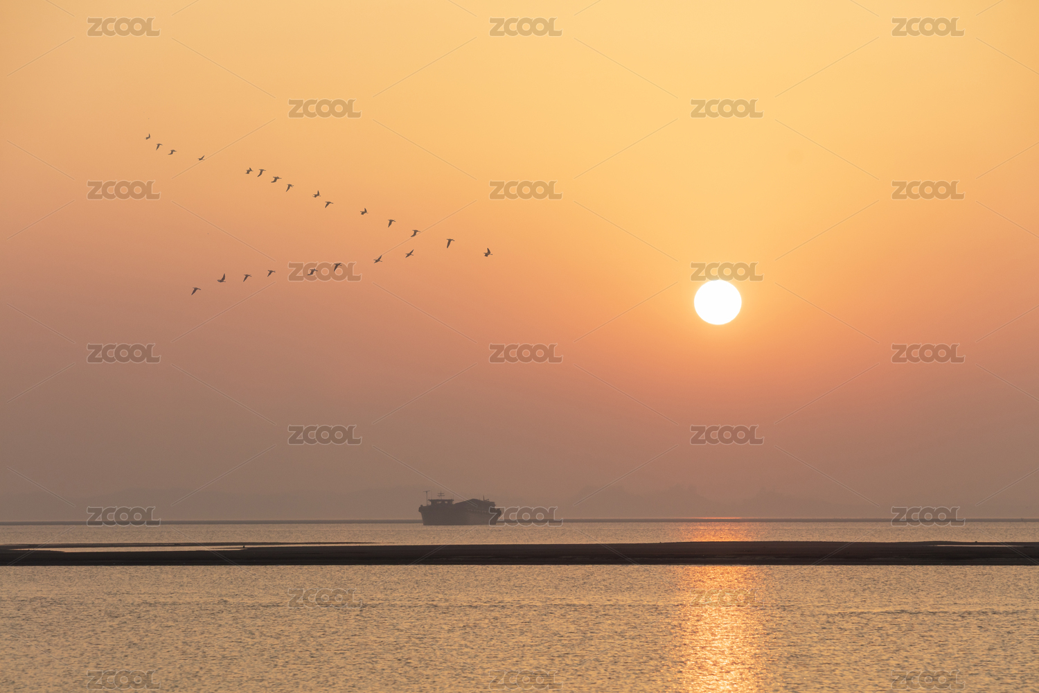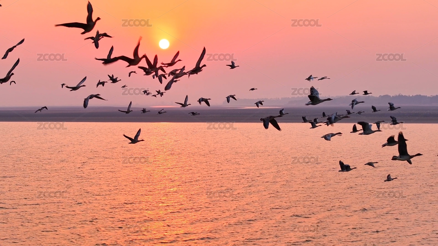 鄱阳湖湖日出日落 大雁候鸟