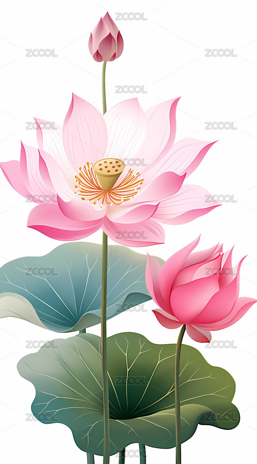 国风荷花莲蓬荷叶插画元素,立夏节气池塘荷