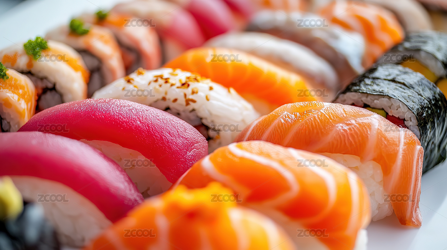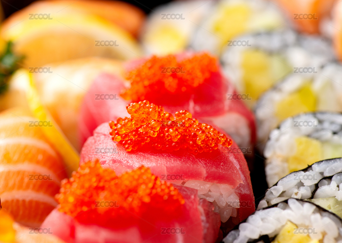 中国的,美食,食品,日本料理的,日式的,鱼籽寿司,三文鱼寿司,蔬菜寿司,寿司拼盘,色彩鲜艳的