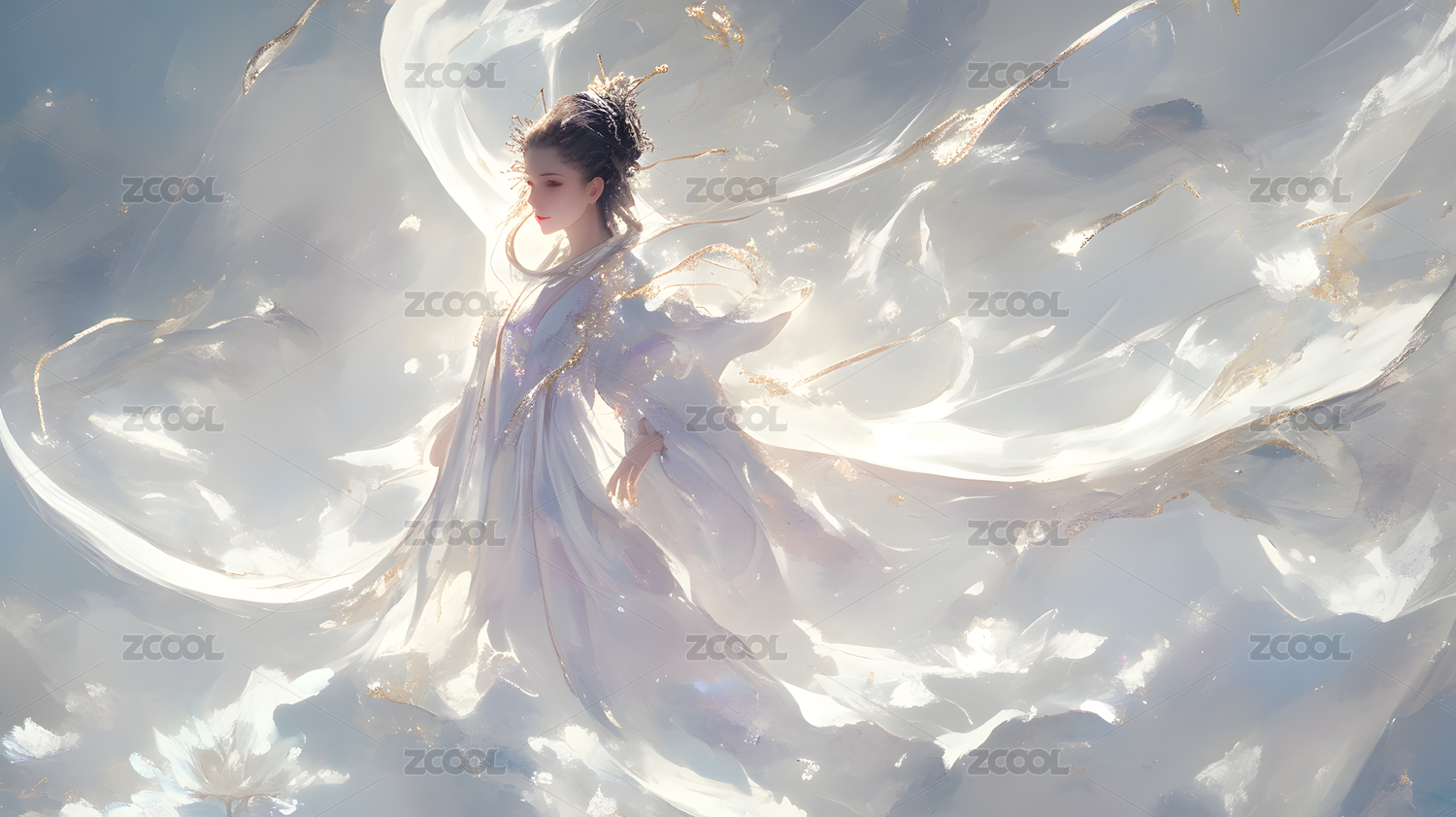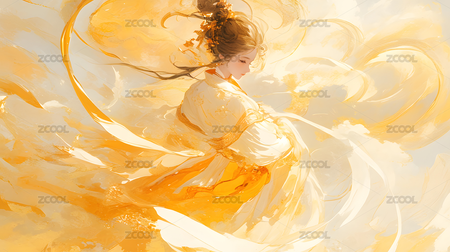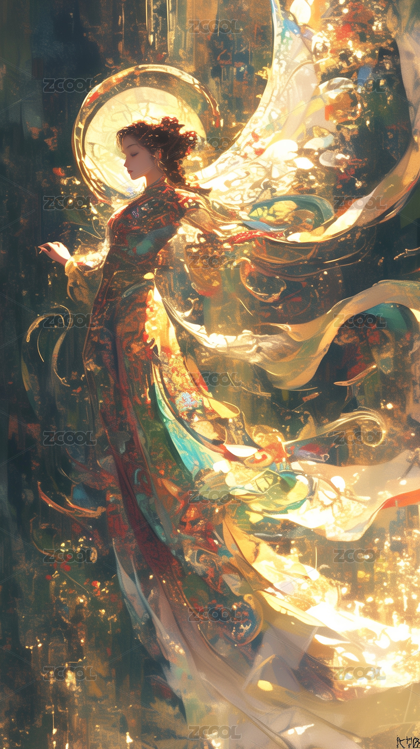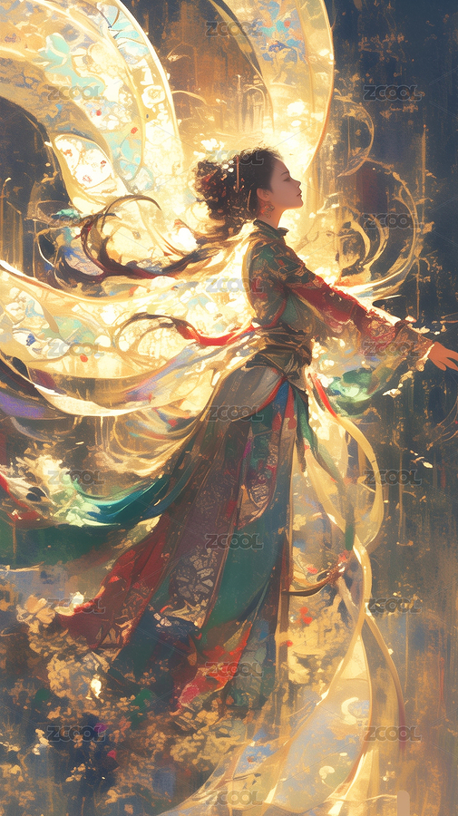 敦煌,飞天,彩衣,金光,壁画,国风,光绘,神女,神话