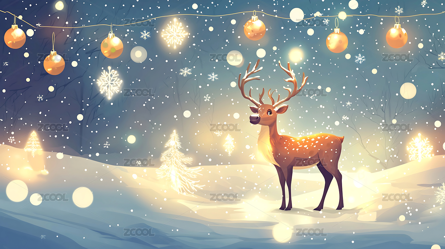 圣诞新年节日背景创意梦幻插画商业海报壁纸