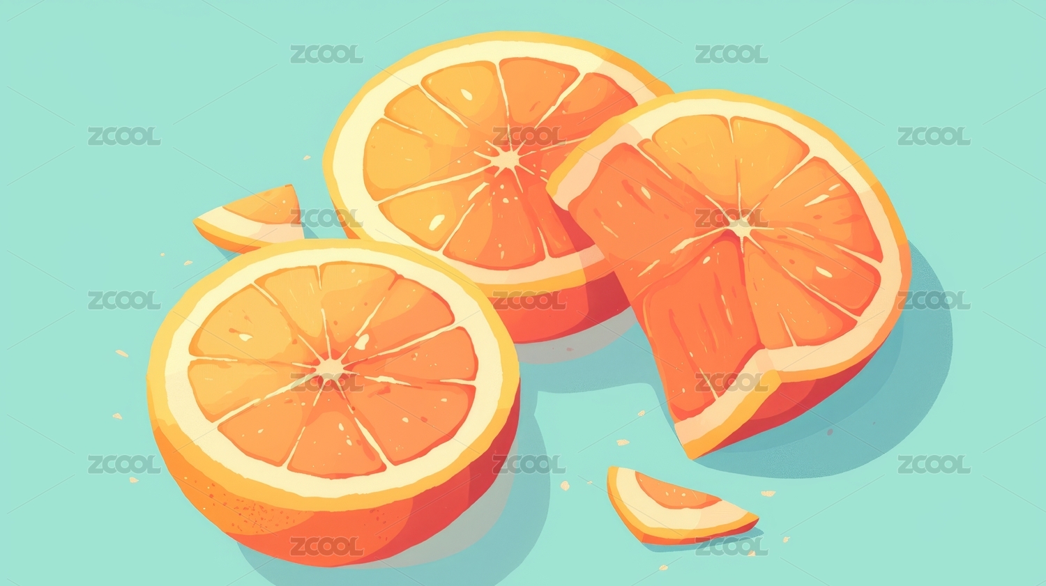橙子,柠檬,柚子,水果,切片,切开,新鲜,食物,插画,可爱