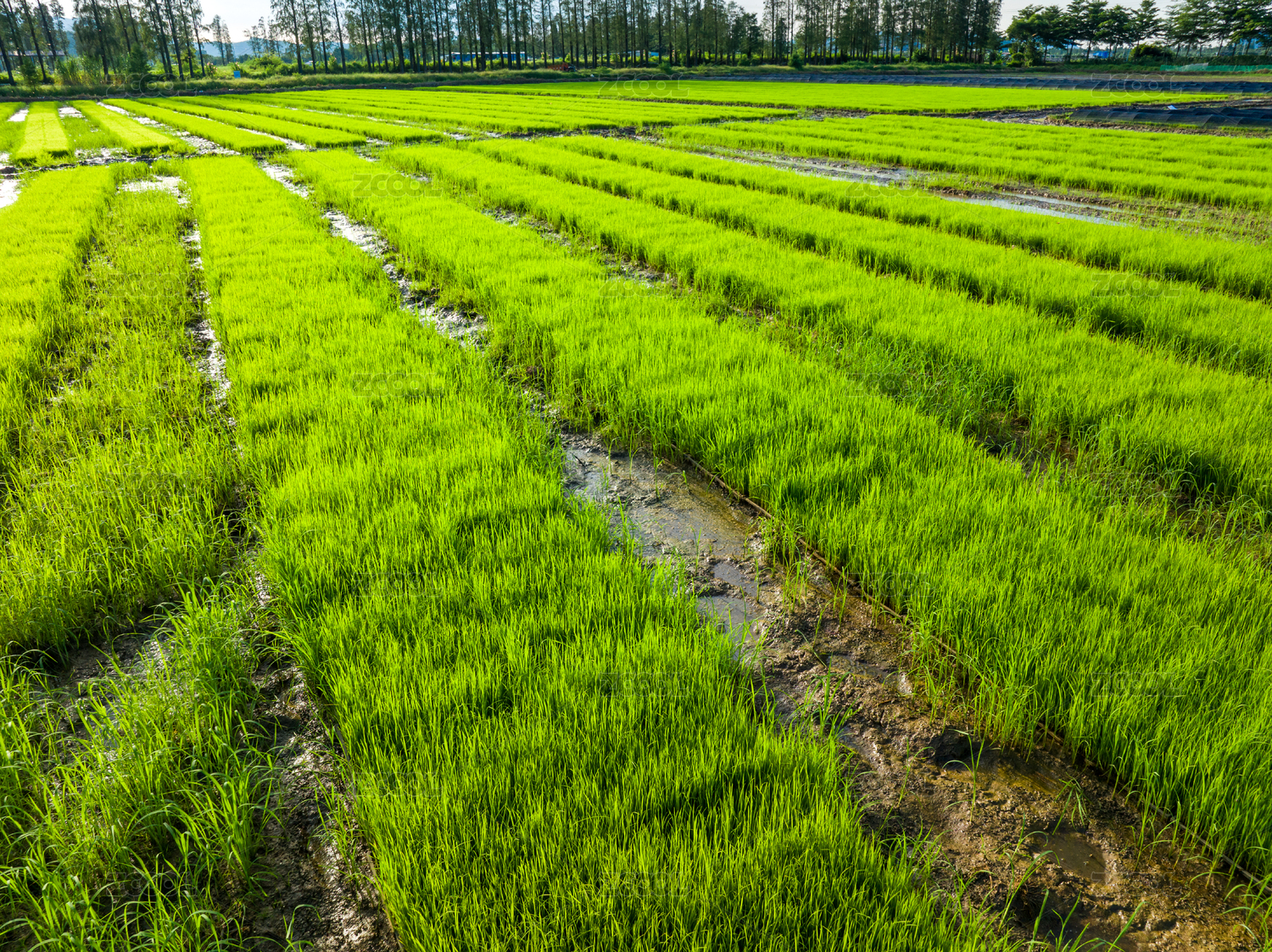 水稻培育秧苗粮食安全绿色稻田生态航拍