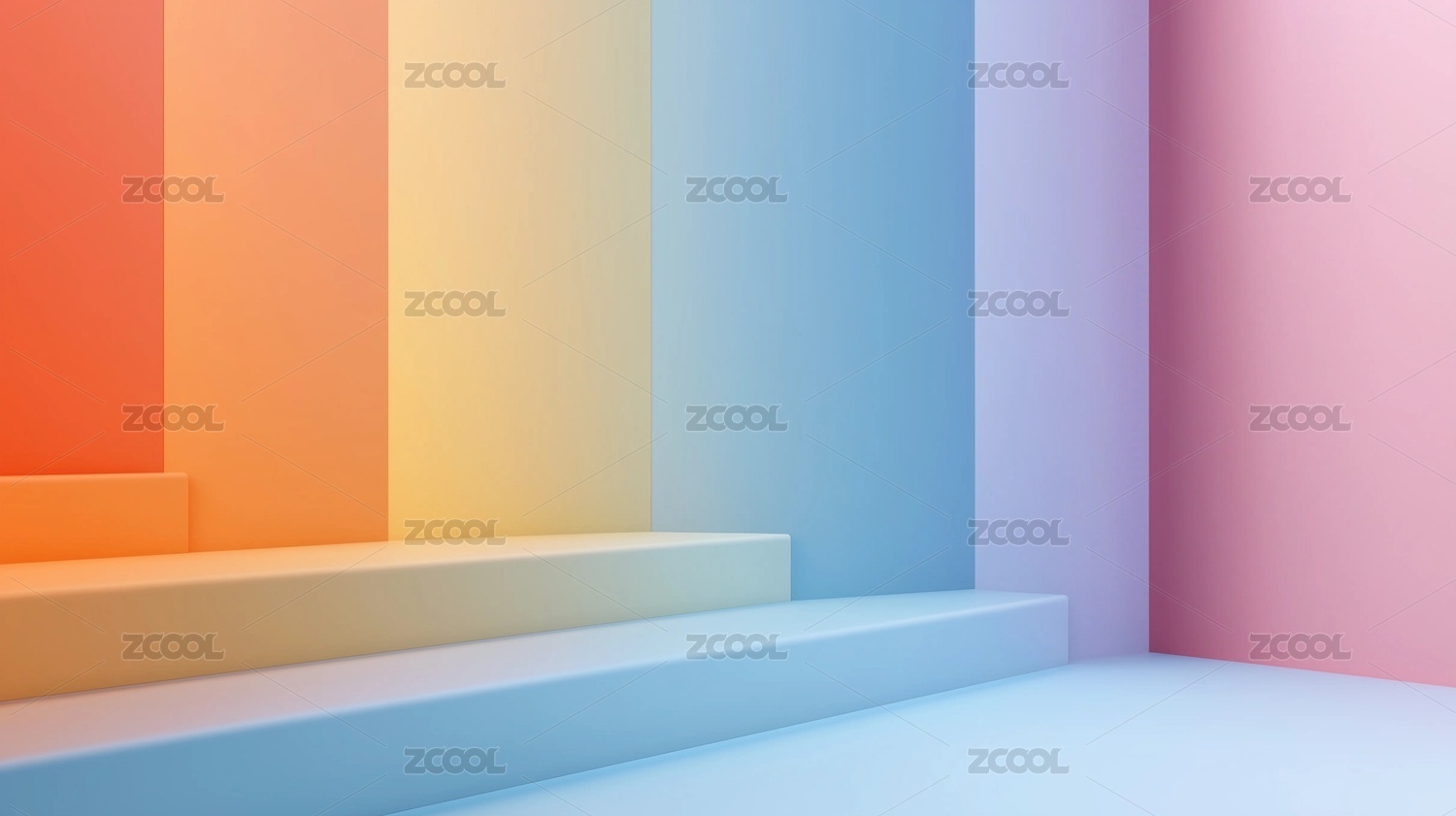梦幻彩色室内空间阶梯展台背景