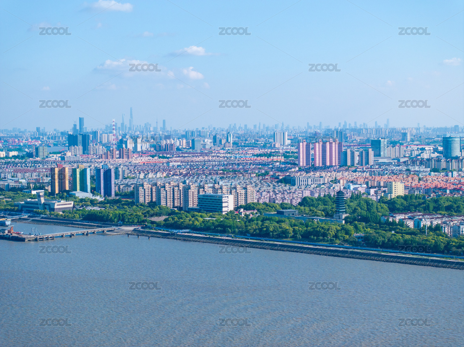 中国上海陆家嘴城市远眺航拍