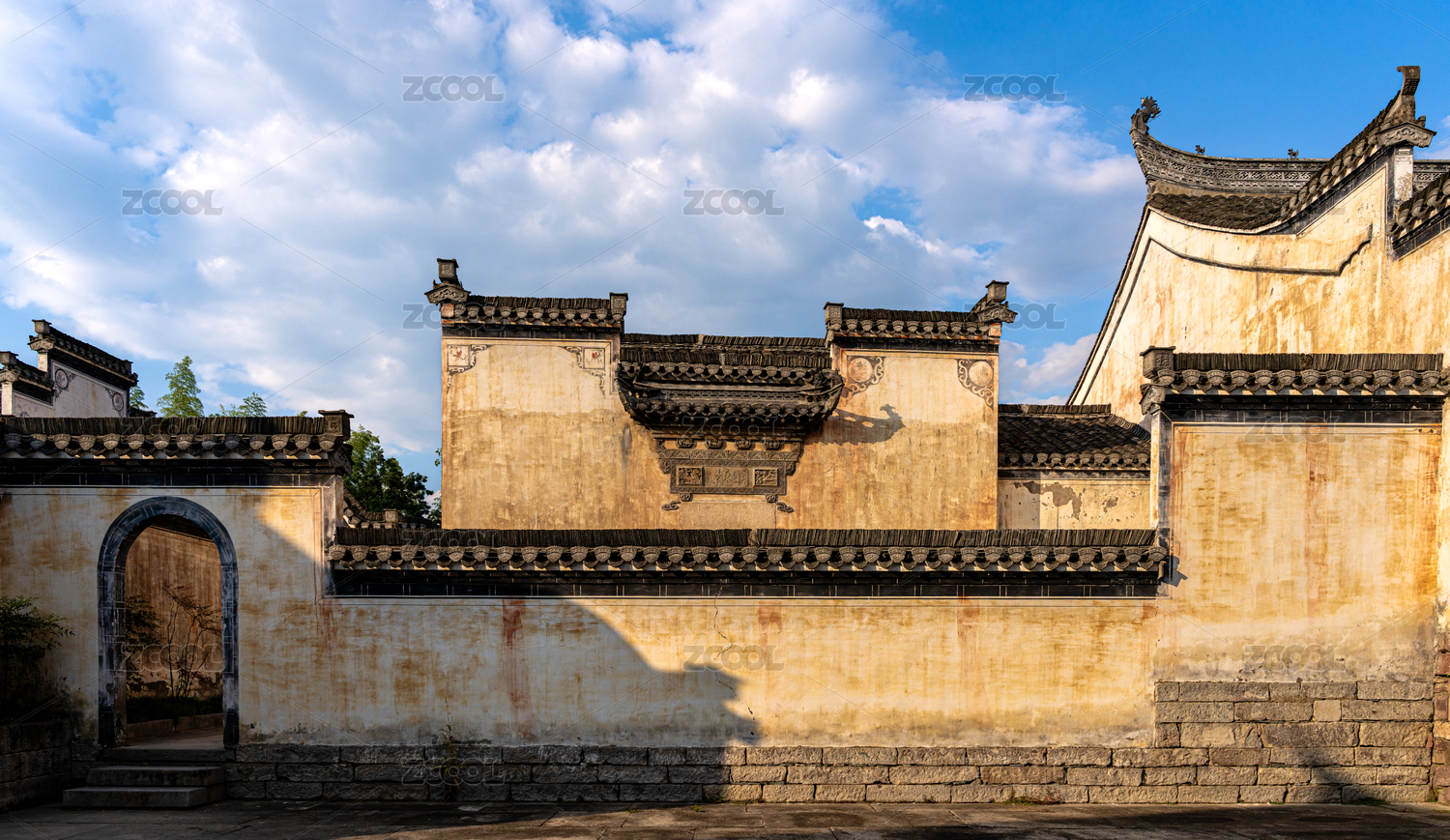 中国安徽徽派建筑白墙黑瓦建筑风光