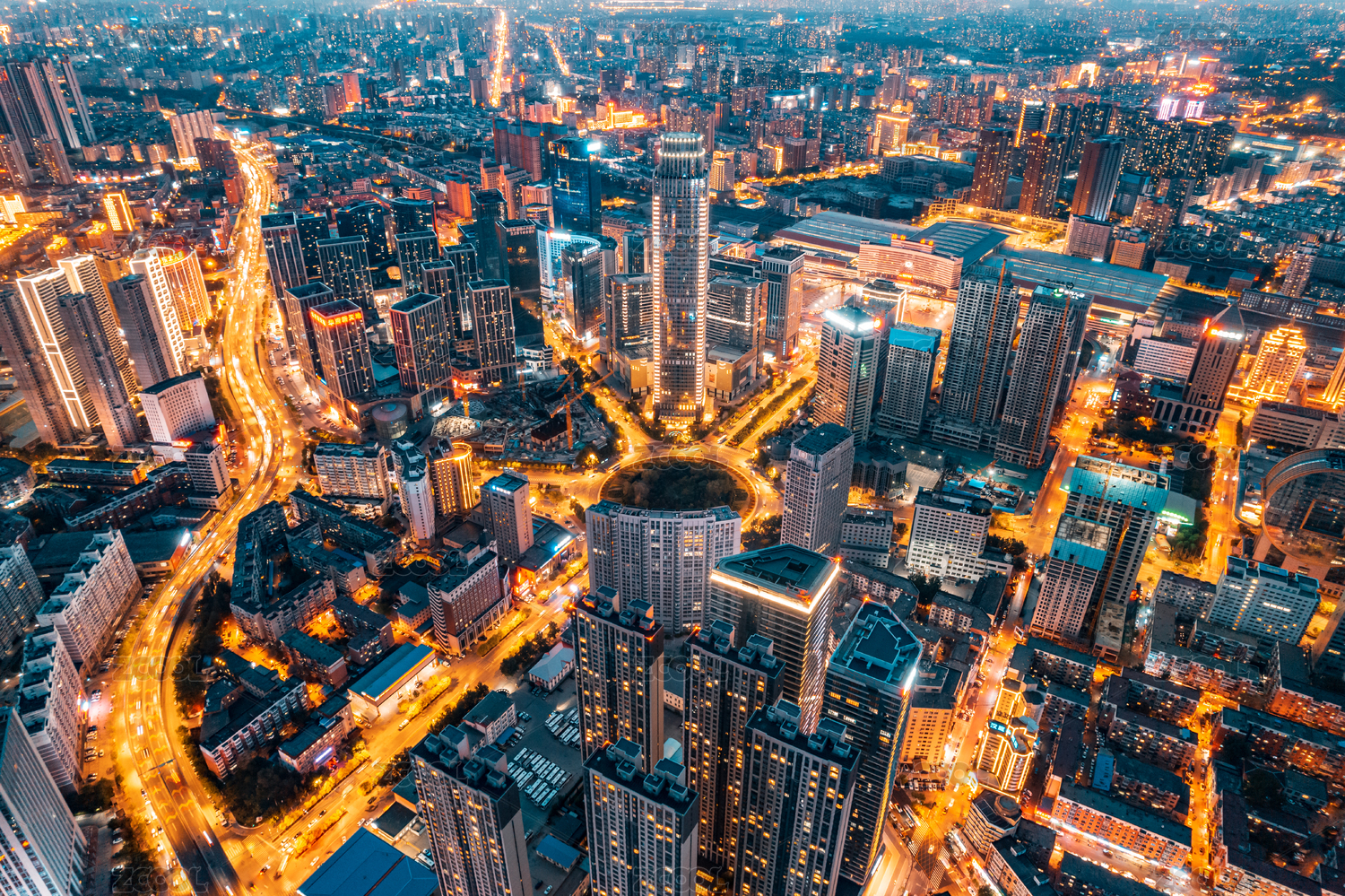 夜幕下俯瞰金星立交桥