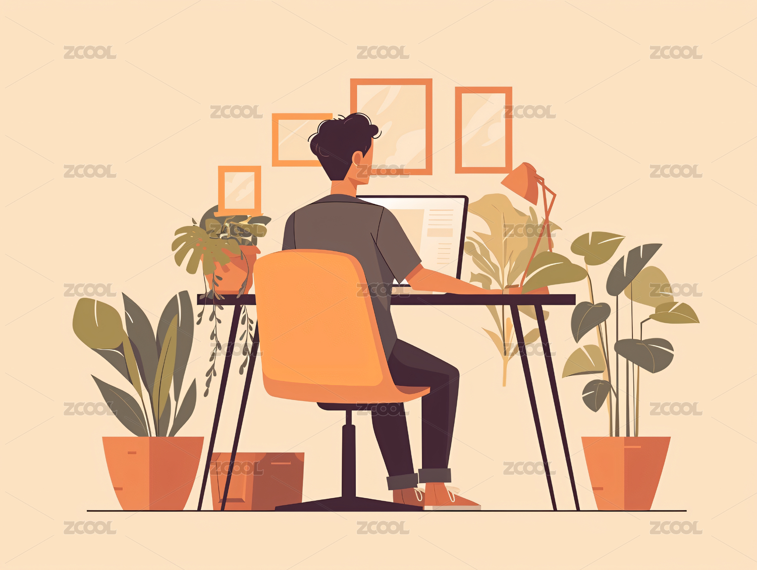 植物,设计,简约,女性,现代,舒适,电脑,办公桌,椅子,书架