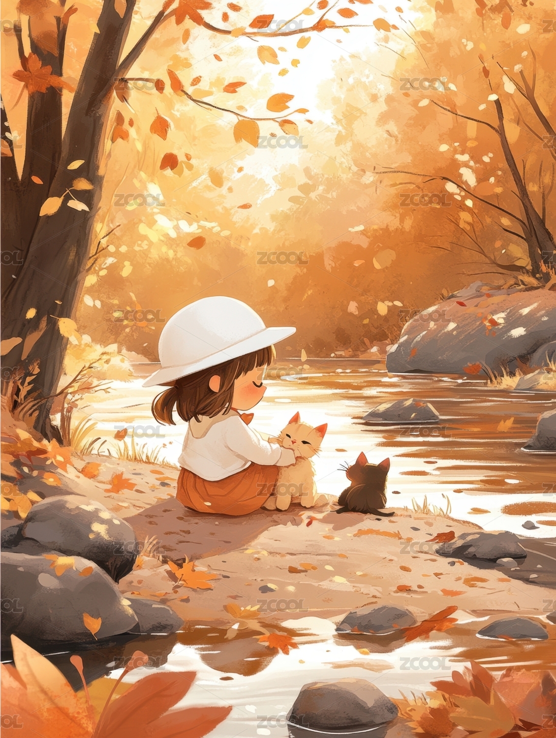 睡觉,躺着睡,男孩,睡觉男孩,猫,抱着猫,秋叶,立秋,秋天,背带裤