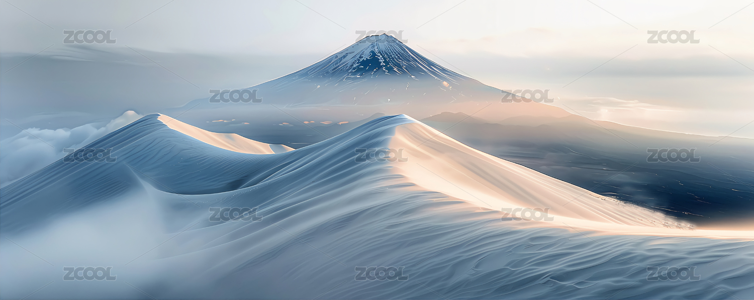 景色,插画,唯美,祥和,梦幻,自然,雪山,山峰,绘画,展示台