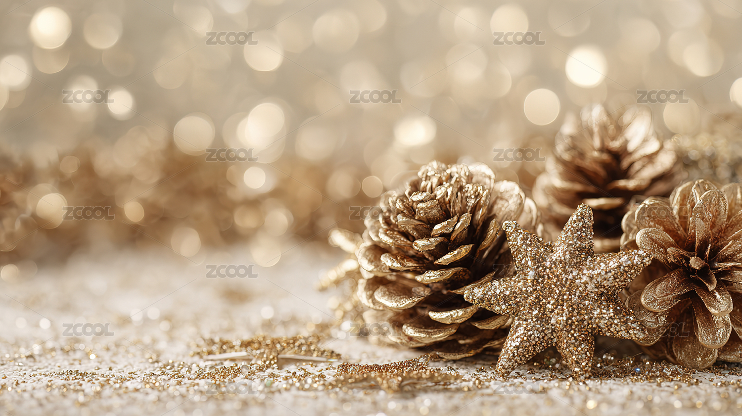 金色闪耀圣诞松果