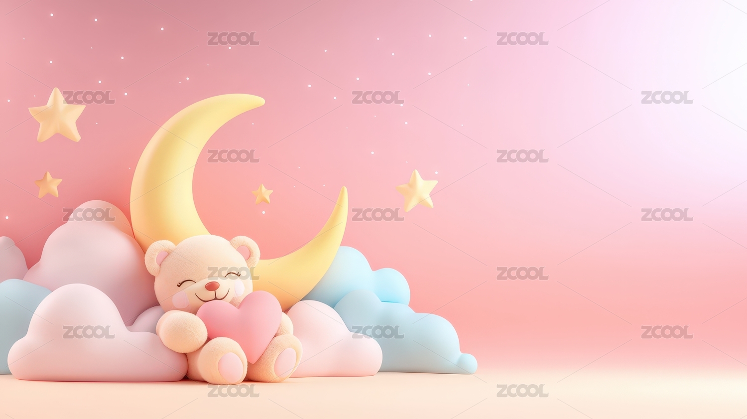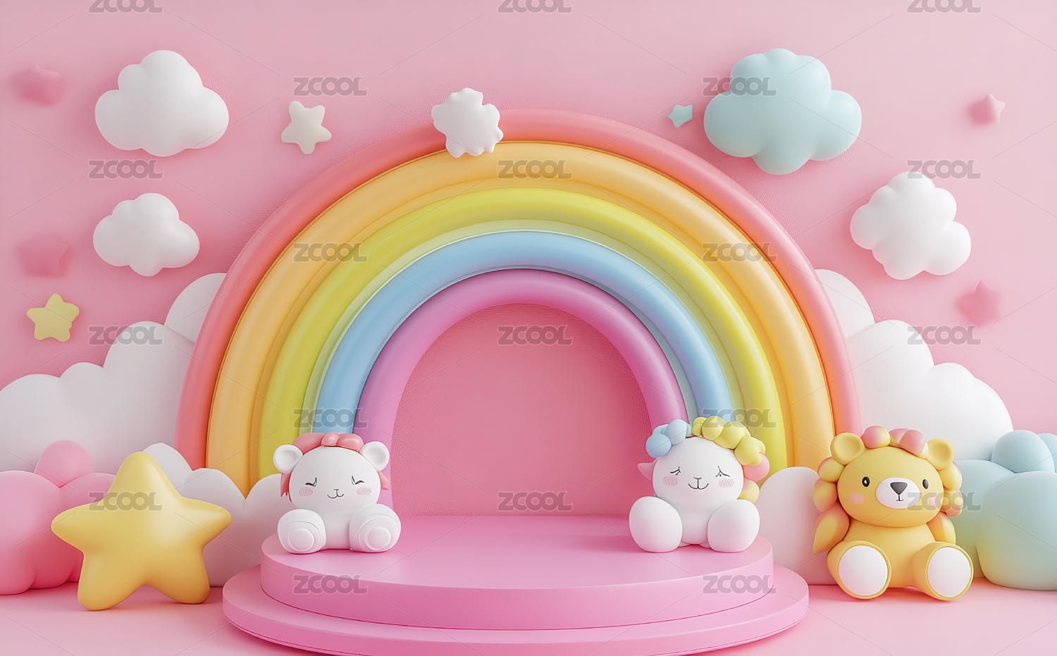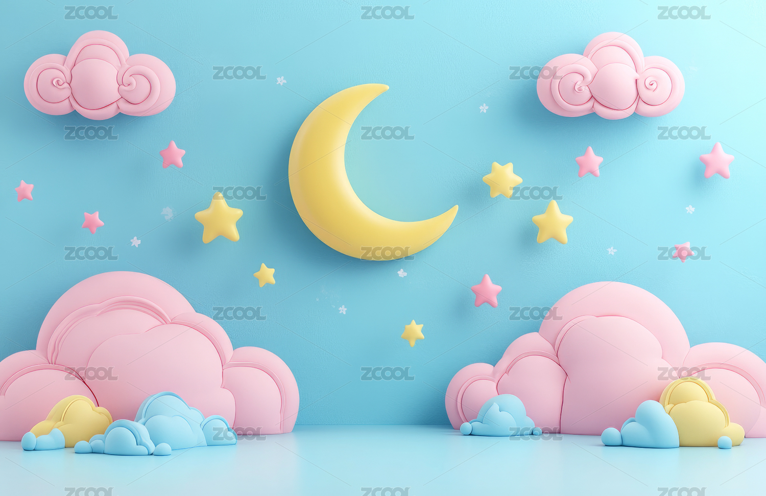 蓝色,柔和,梦幻,粉色,云朵,卡通,温馨,可爱,星星,童趣