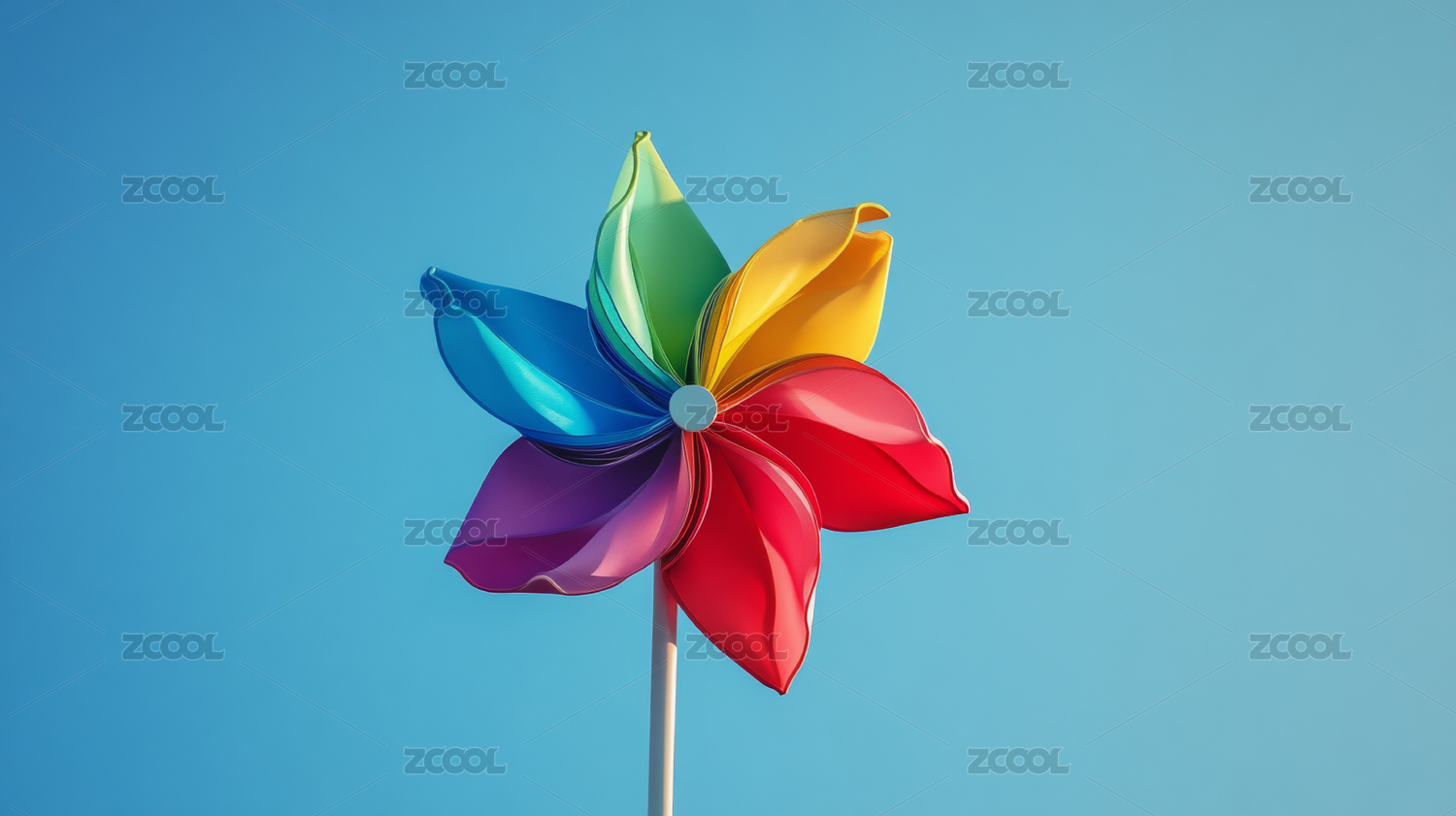 无人,3D,插画,卡通风格,儿童节,彩虹,炫彩,多彩,风车
