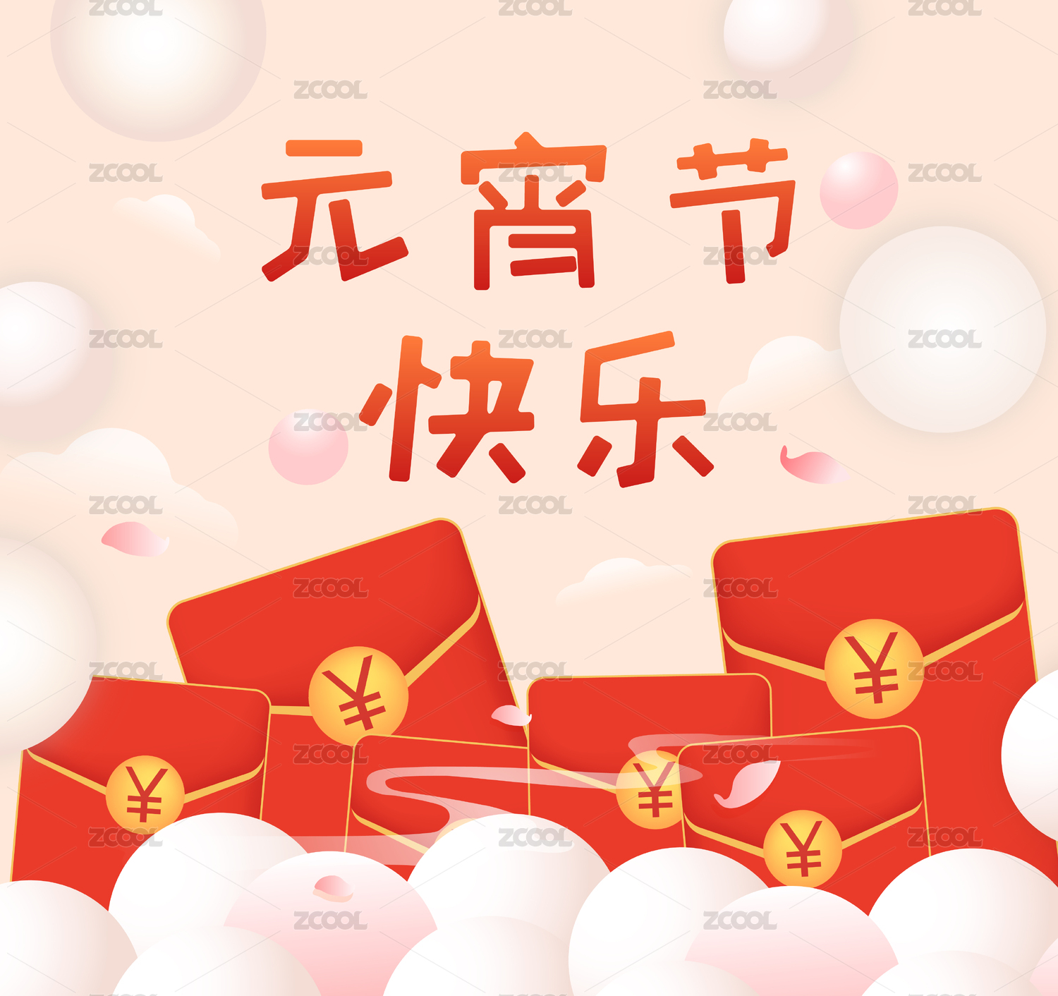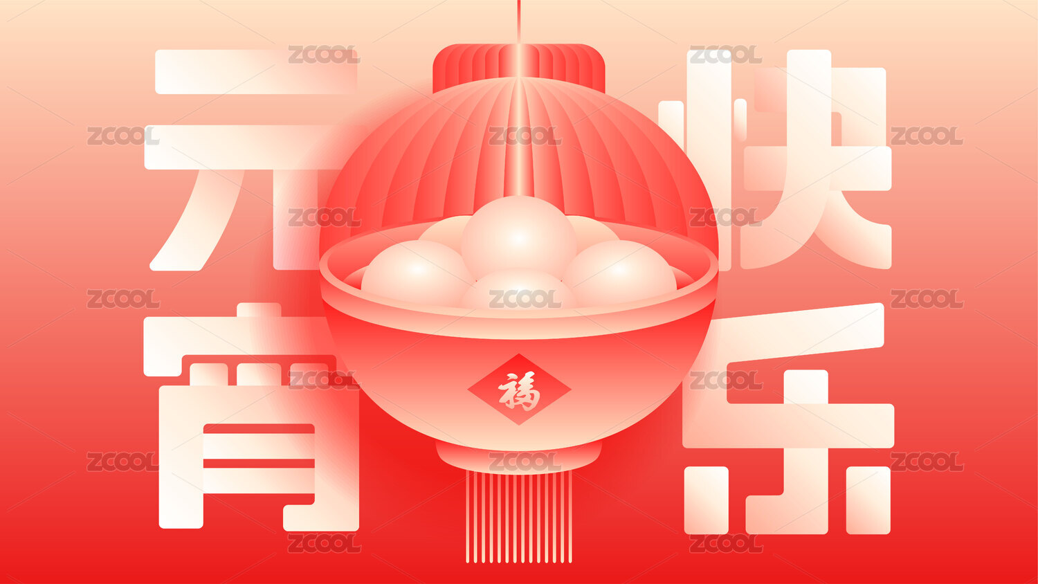元宵节快乐国潮云纹灯笼汤圆庆祝矢量书法字