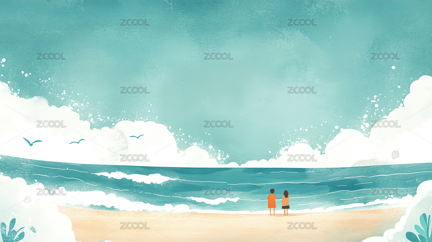 飘着花瓣粉色唯美天空下的母女温馨重阳节插画