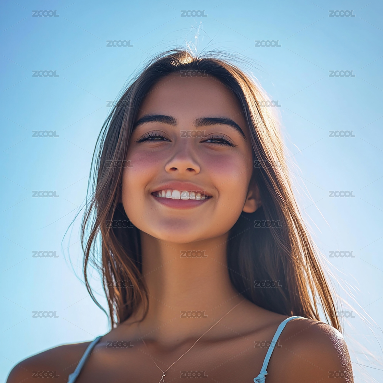 美女,女性,微笑女性,蓝天,美丽,女孩,模特,特写,美女特写,头像