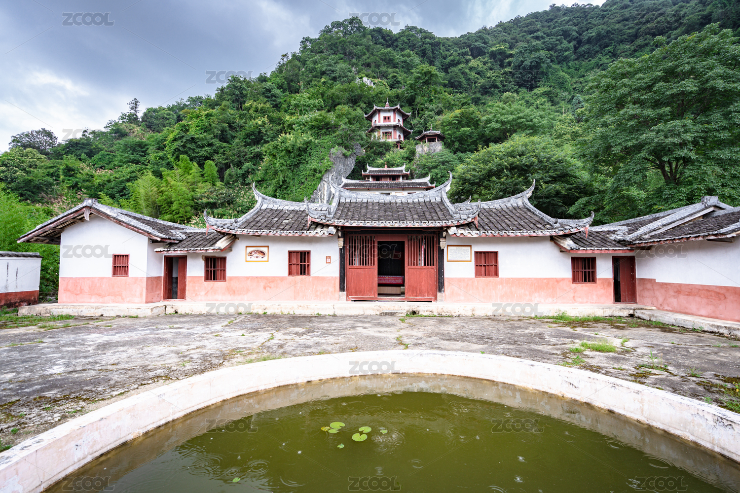 阴天山脚下的古建-福建龙岩小池龙池书院