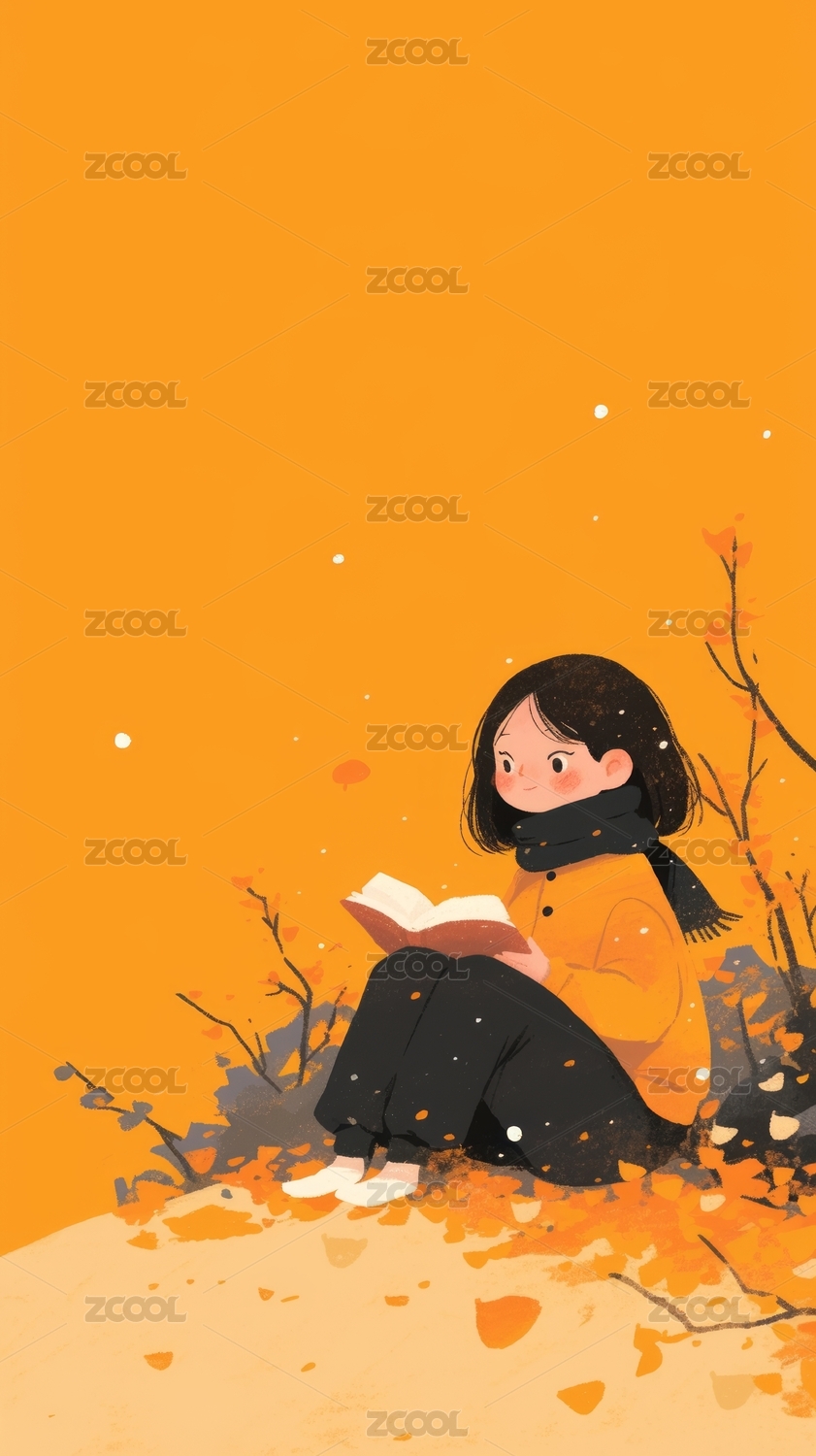 女孩秋日阅读书籍