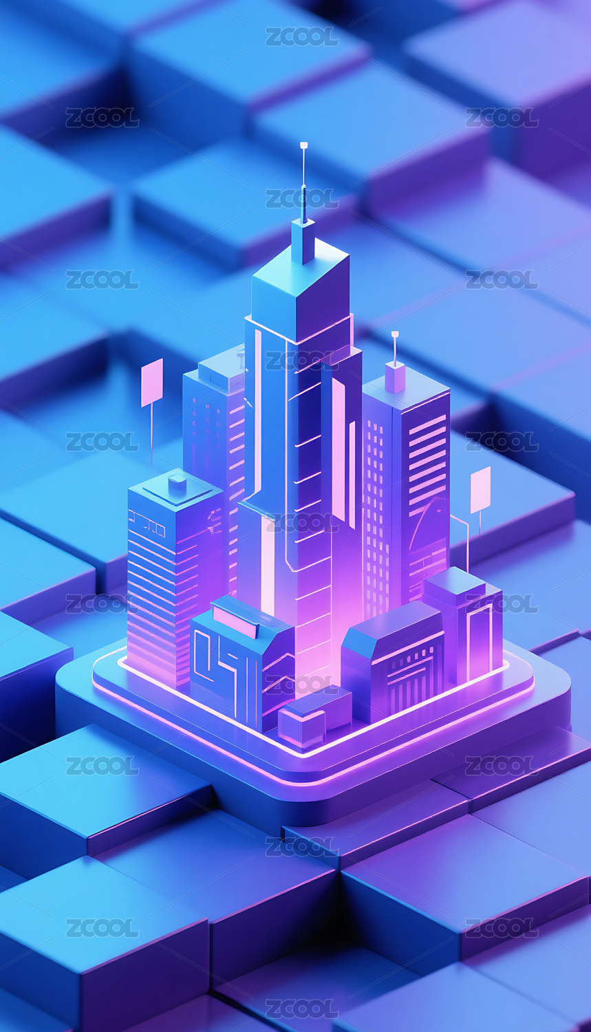 赛博朋克城市建筑现代科幻商务三维渲染插画