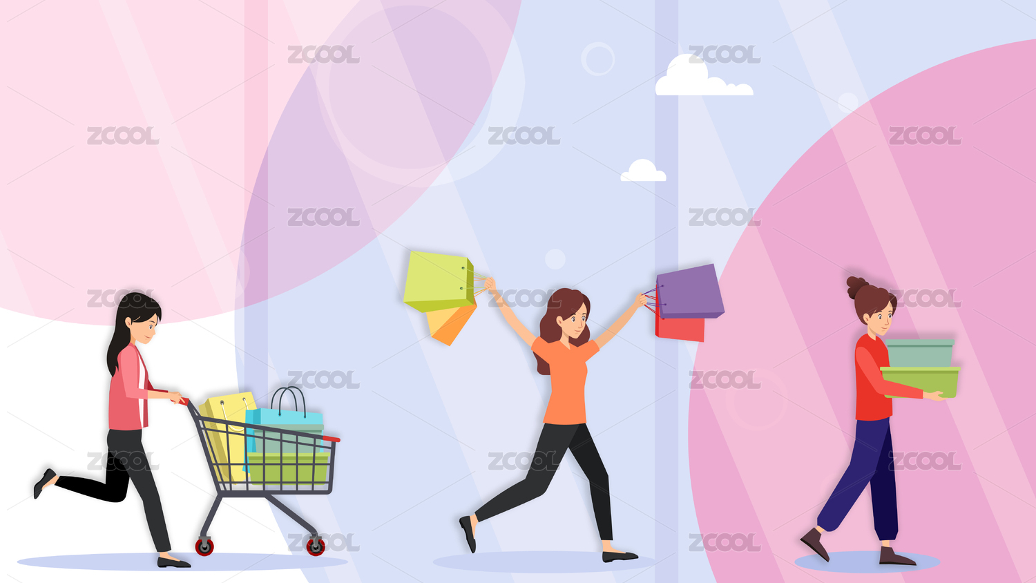 背景,可爱,扁平,清新,欢乐,女孩,男孩,网上购物,时尚,礼物