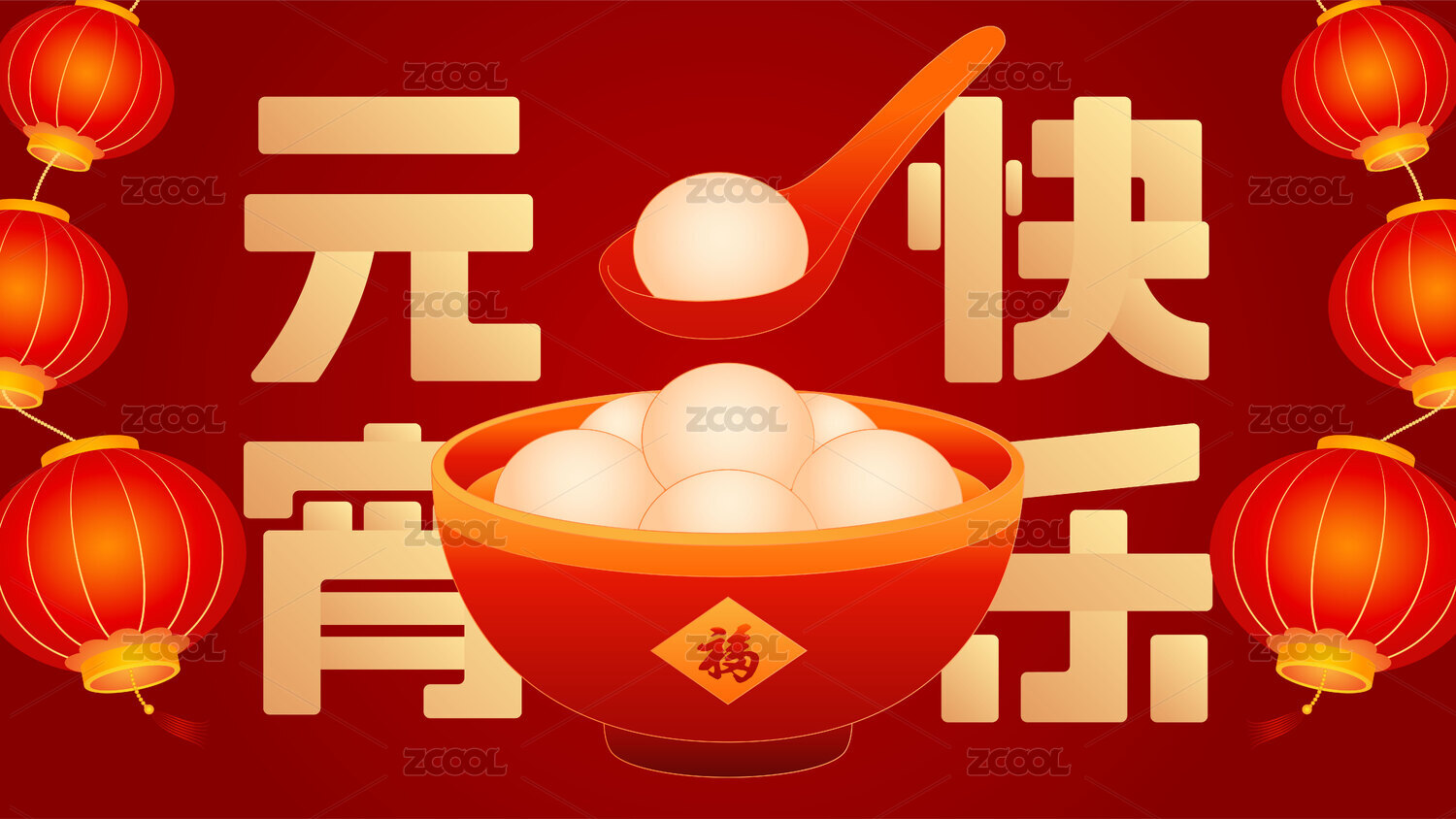 元宵佳节花灯汤圆红色温暖背景插画和艺术字体