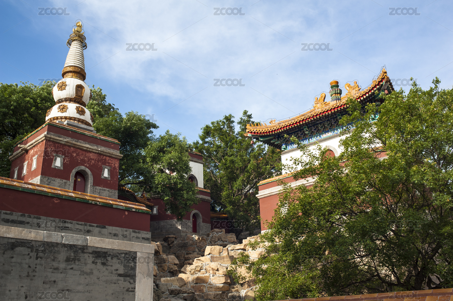 北京颐和园万寿山四大部洲藏传寺庙白塔建筑
