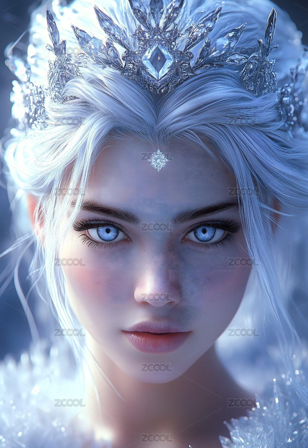 银发蓝眼女神晶莹剔透的装扮神秘而优雅