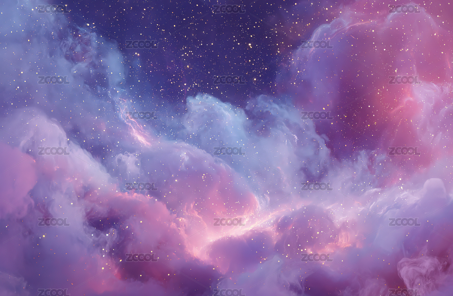 梦幻般的彩色云朵与星空