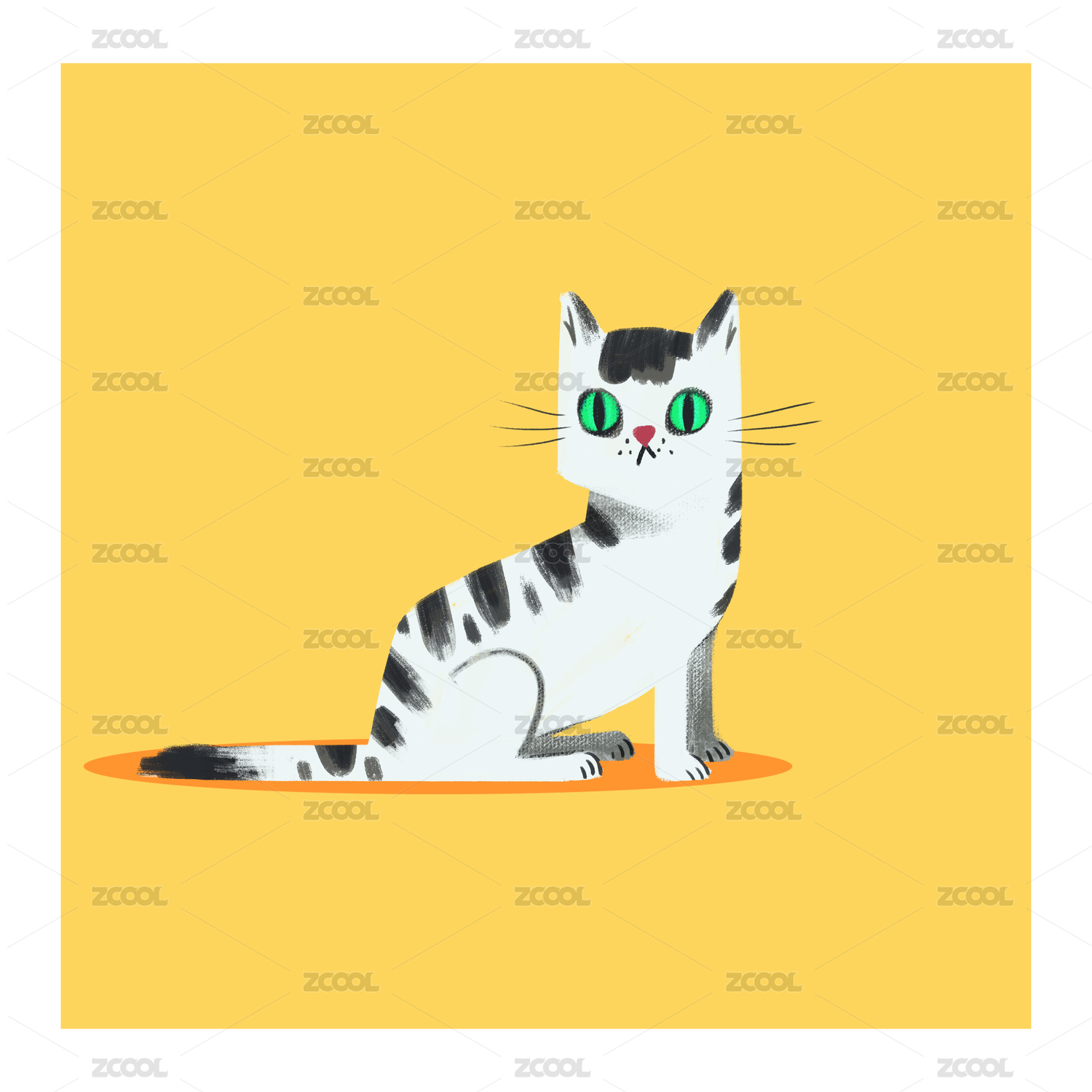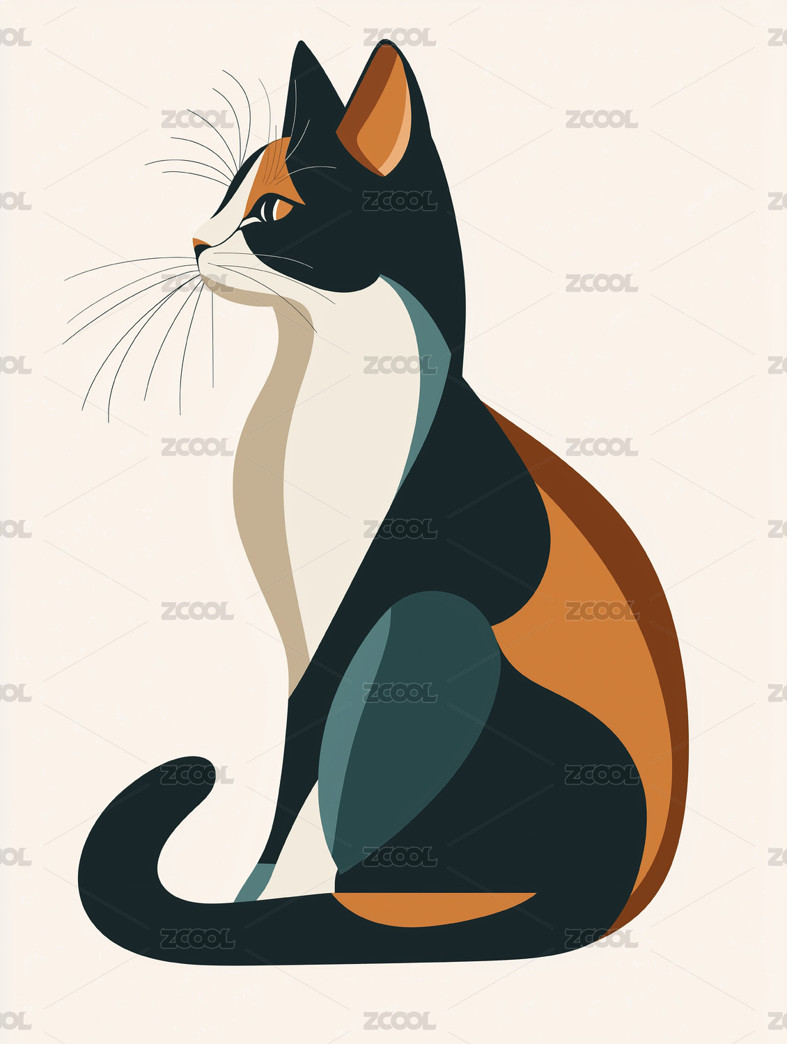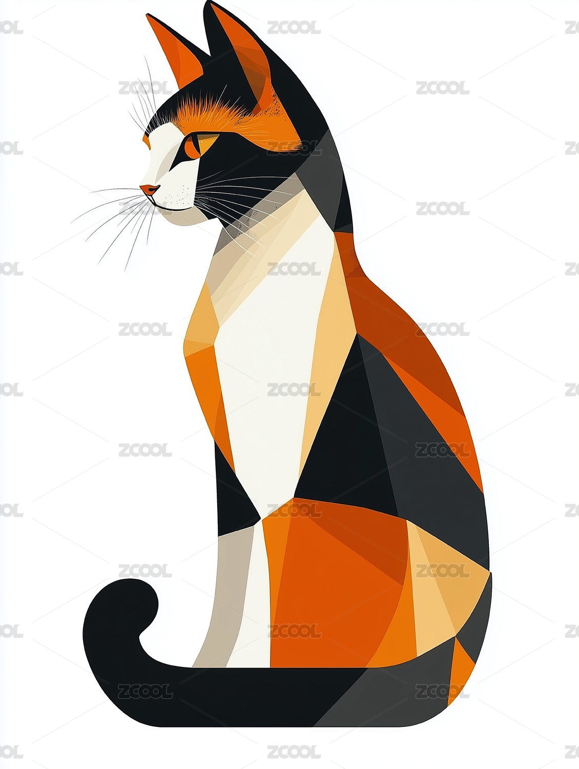 几何色块拼接的猫插画