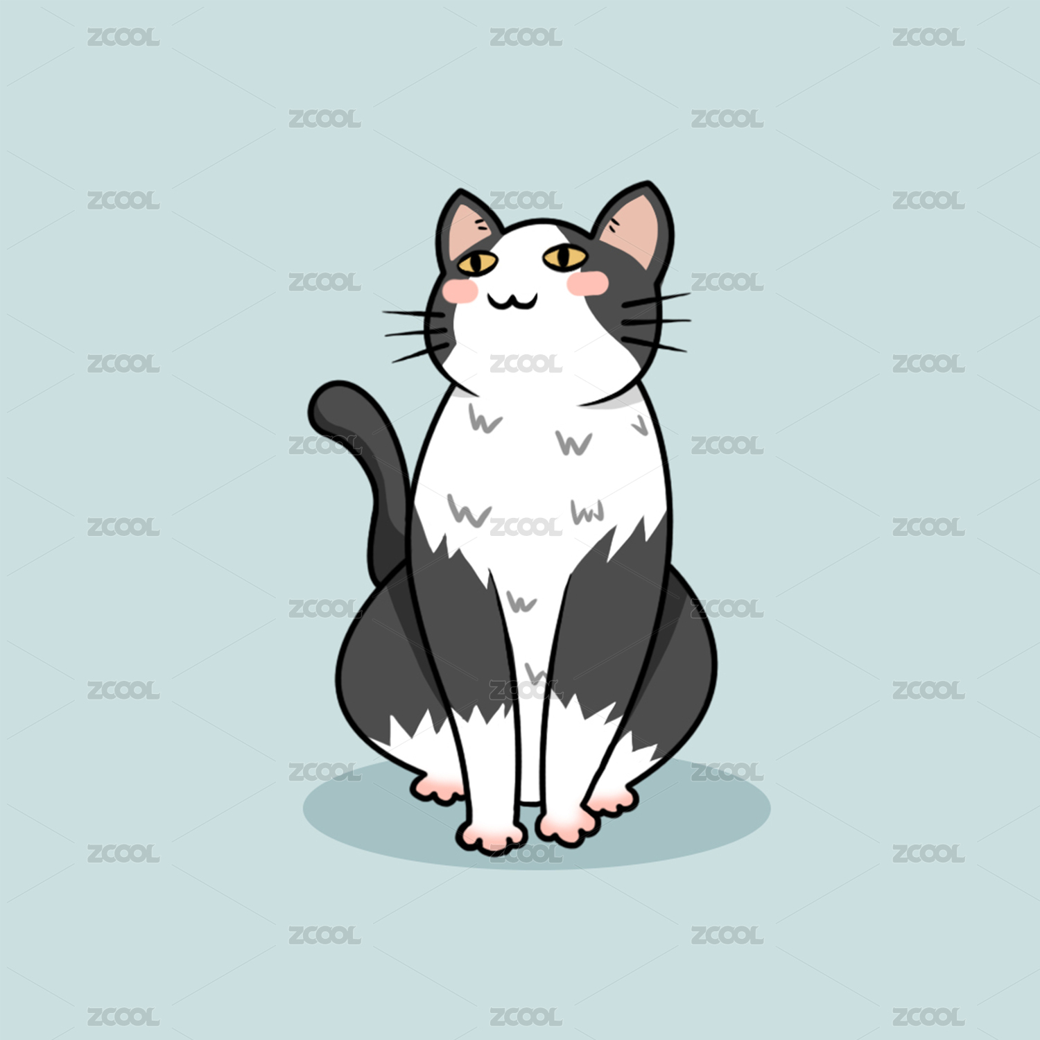 卡哇伊猫矢量图微笑的小猫可爱的圆脸猫