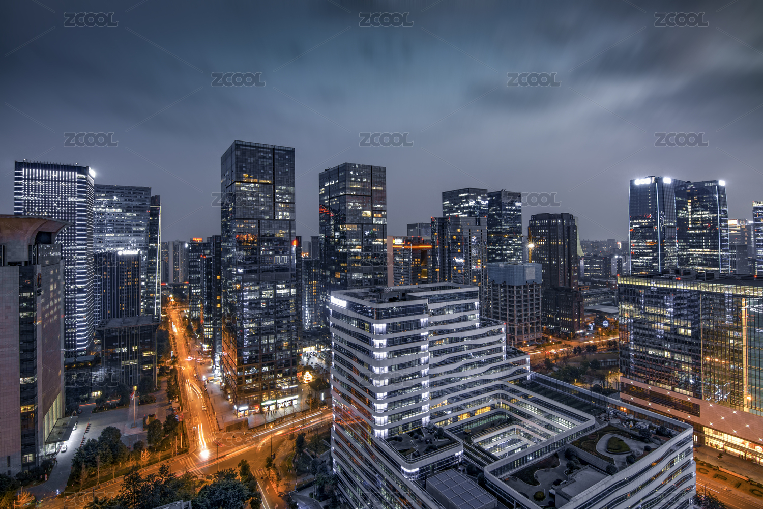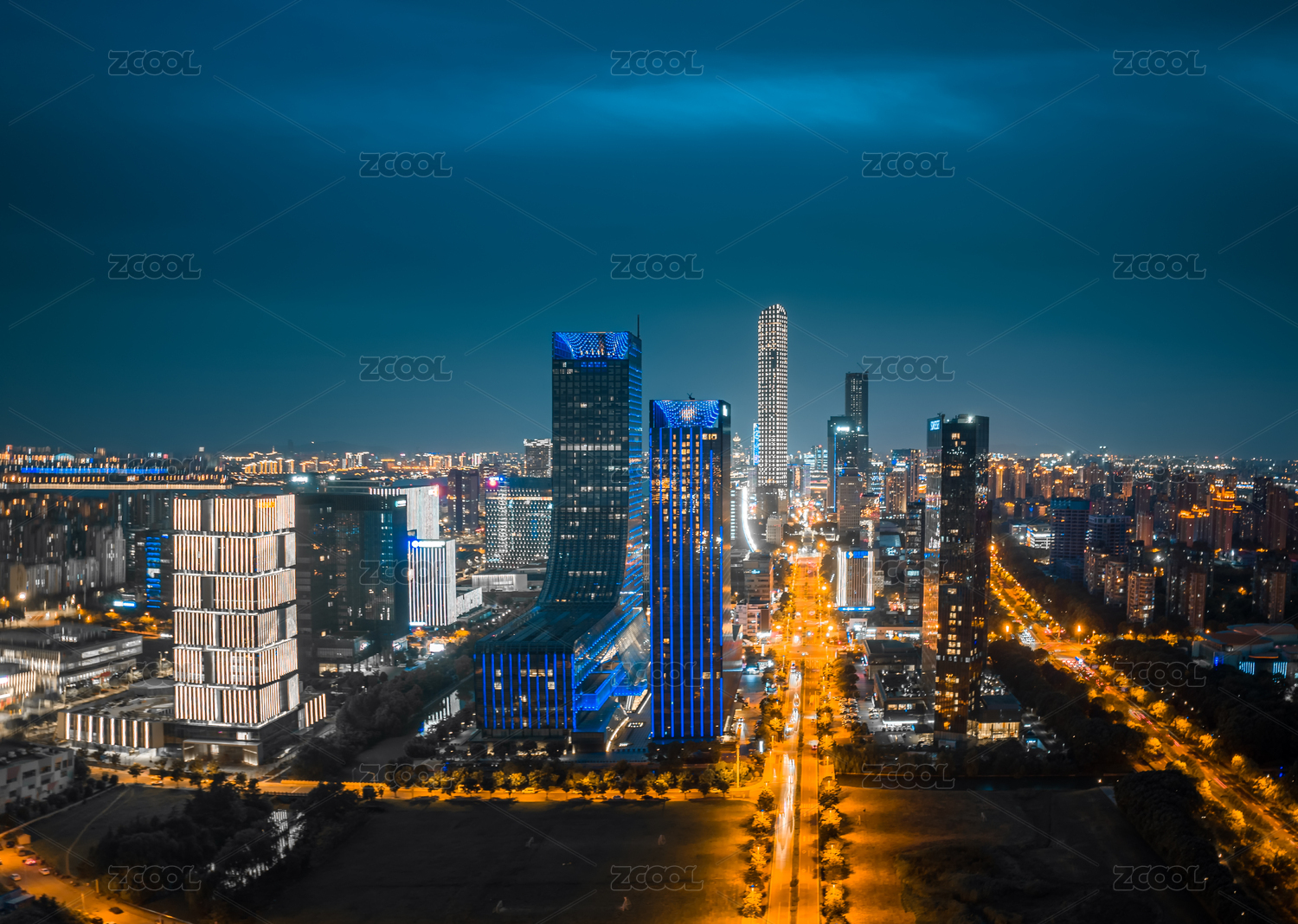 中国江苏省苏州工业园区夜晚航拍风景,商业