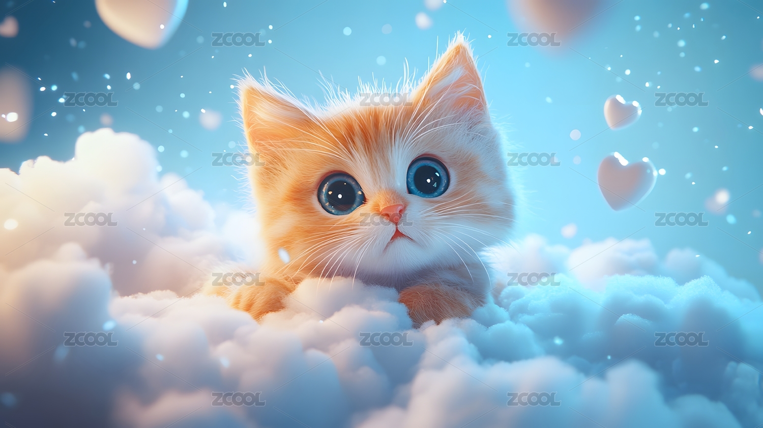 云间萌猫心形点缀