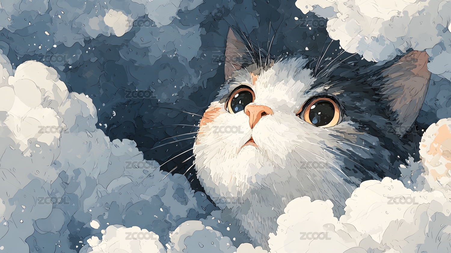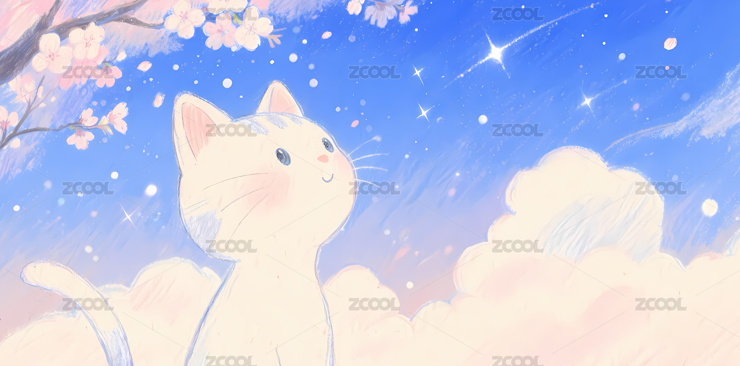 云朵猫咪仰望天空清新治愈