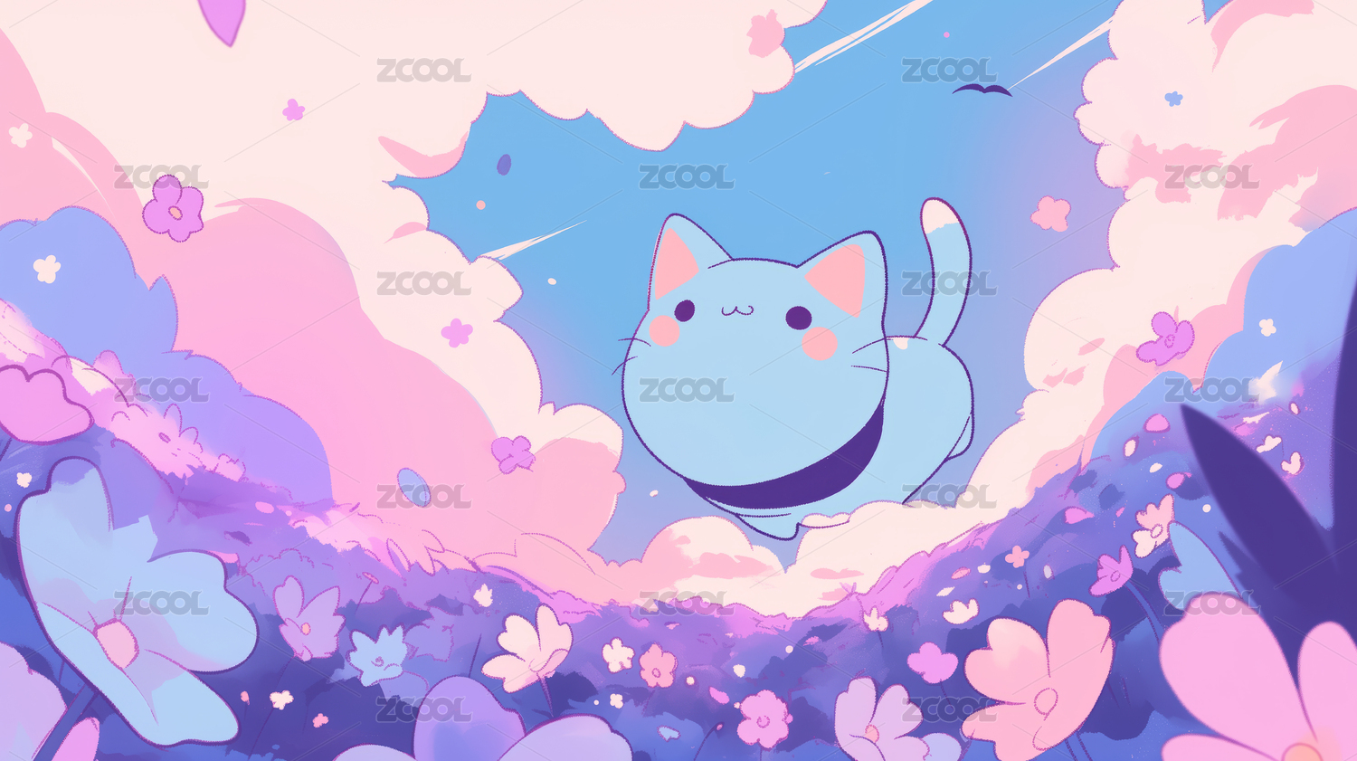 唯美梦幻花朵猫咪插画