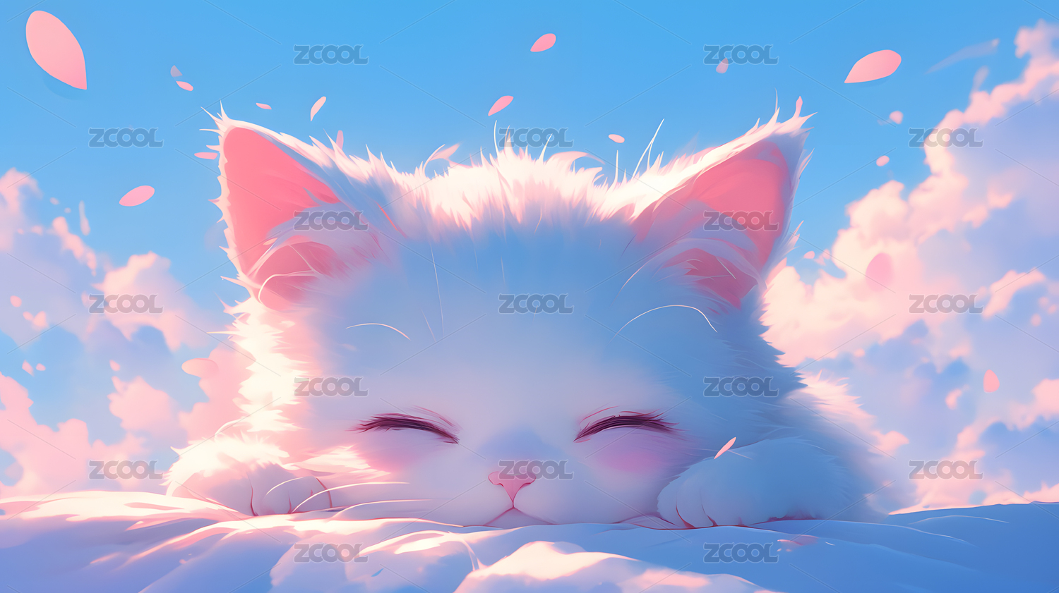 云端玫瑰丛中的可爱白猫