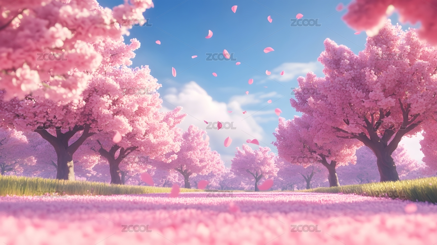 浪漫,唯美,粉色,梦幻,阳光,绘画,水彩,柔和,宁静,樱花