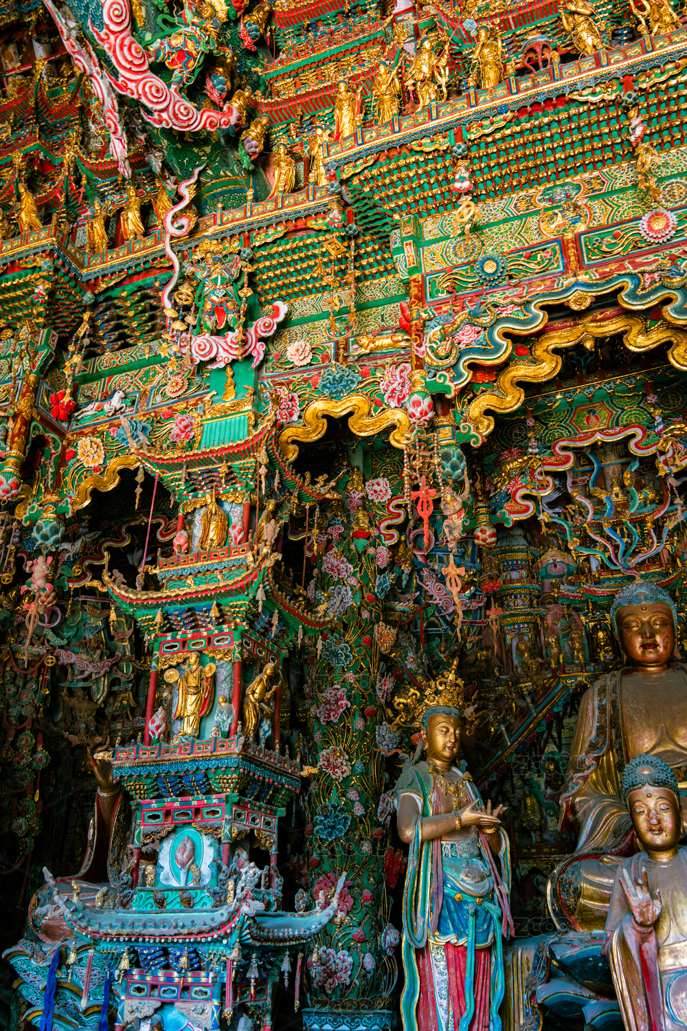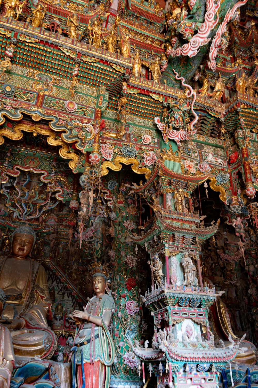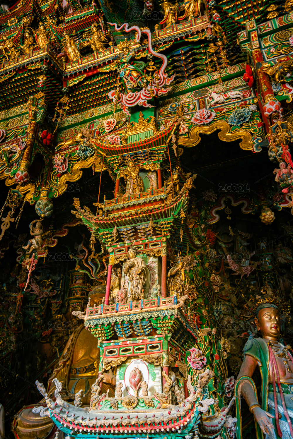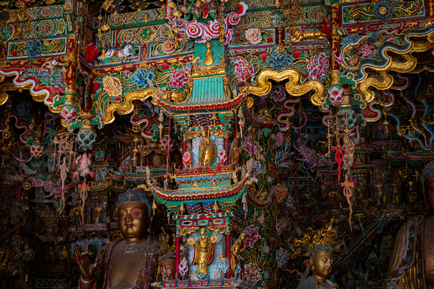 山西临汾隰县小西天内的明清贴金悬塑及彩绘
