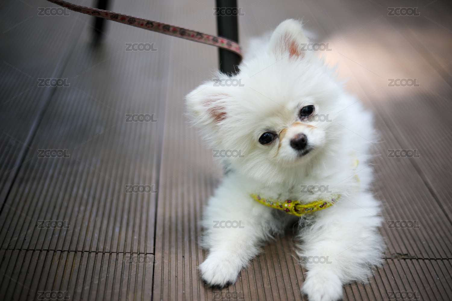 笑脸吐舌头活泼可爱的博美犬正面纯色背景