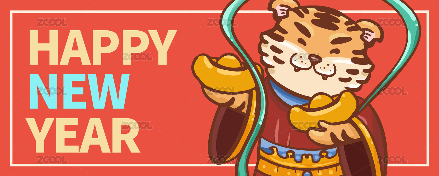 虎年,虎,老虎,海报,横幅,插画,手绘,国潮
