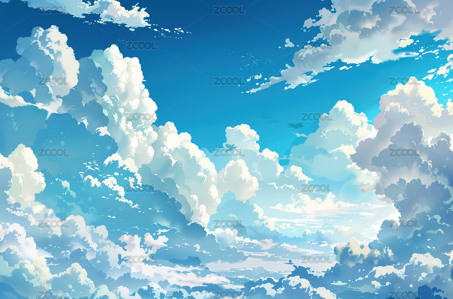 手绘,卡通,唯美,蓝天,白云,插画,背景,户外,天空